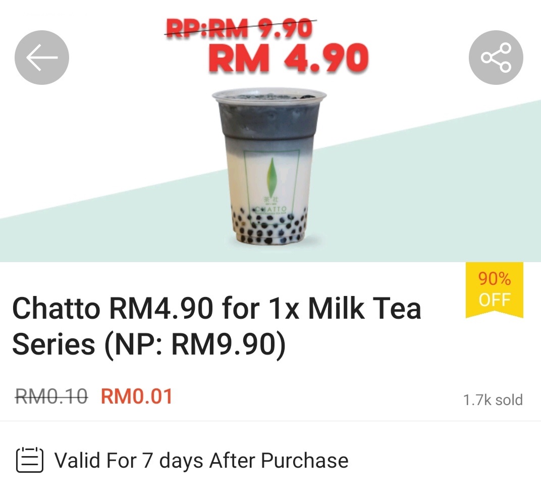 ⑩ Chatto —— 奶茶只需RM4.90(需使用RM0.01 来购买饮料礼券)