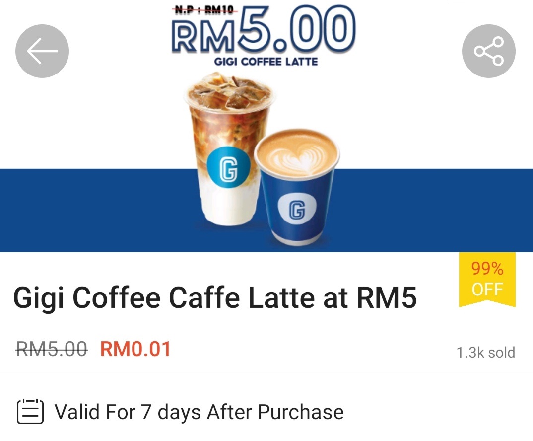 ⑨ Gigi Coffee —— Caffe Latte 只需RM5(需使用RM0.01 来购买饮料礼券)