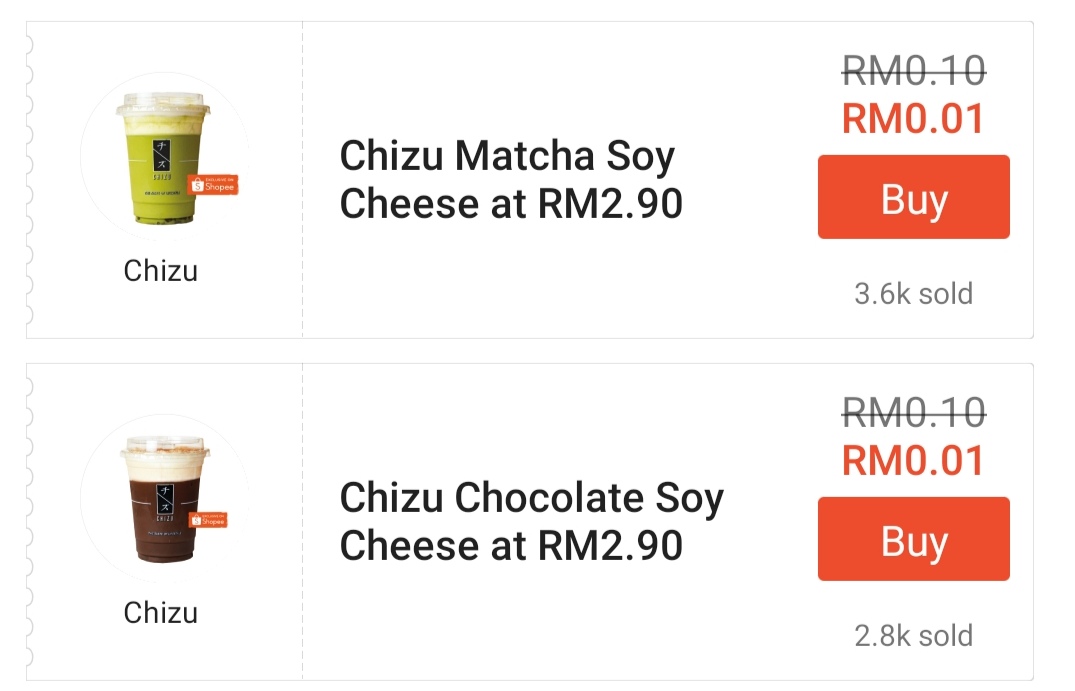 ② Chizu —— 饮料最低只需RM2.90(需使用RM0.01 来购买饮料礼券)