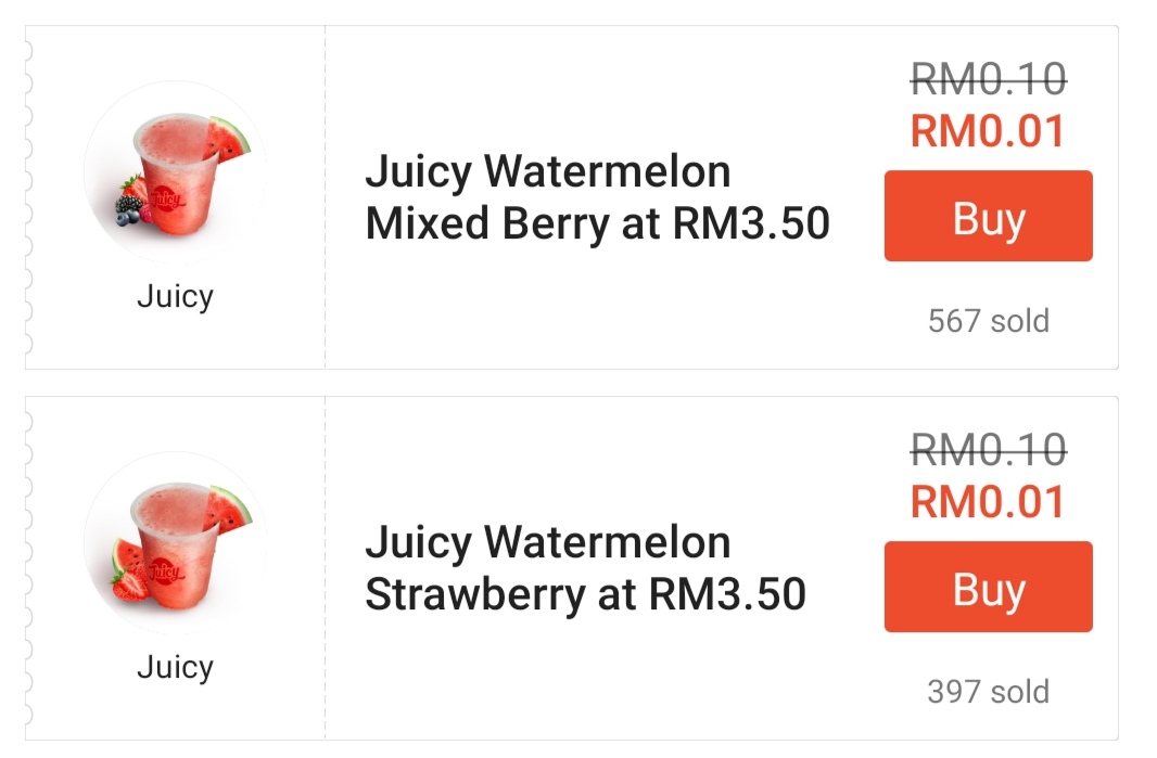 ③ Juicy —— 饮料最低只需RM3.50(需使用RM0.01 来购买饮料礼券)