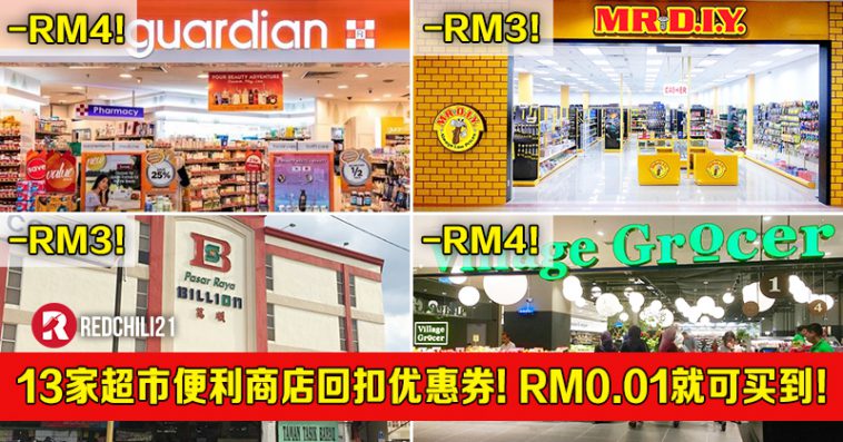 大马著名13家超市便利商店推出折扣优惠!只要你通过Shopee 购买RM0.01 超值礼券就可享有回扣优惠!