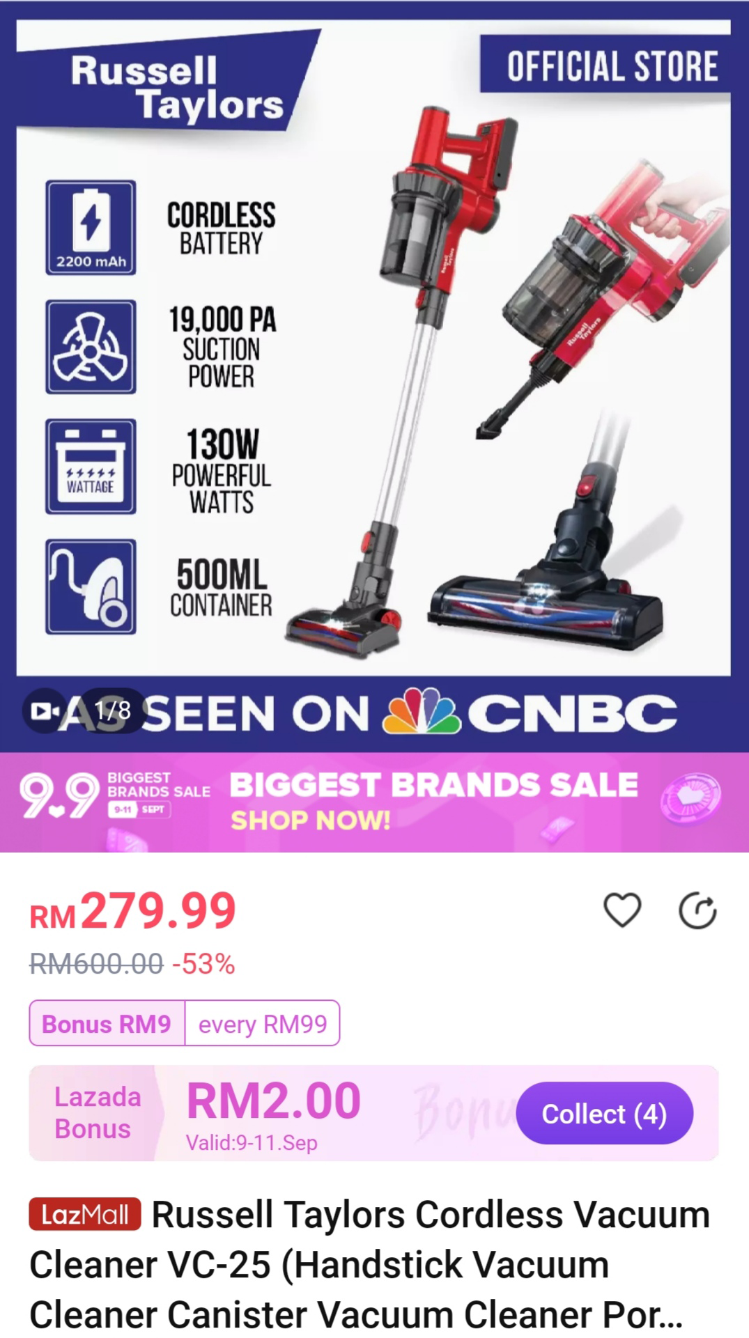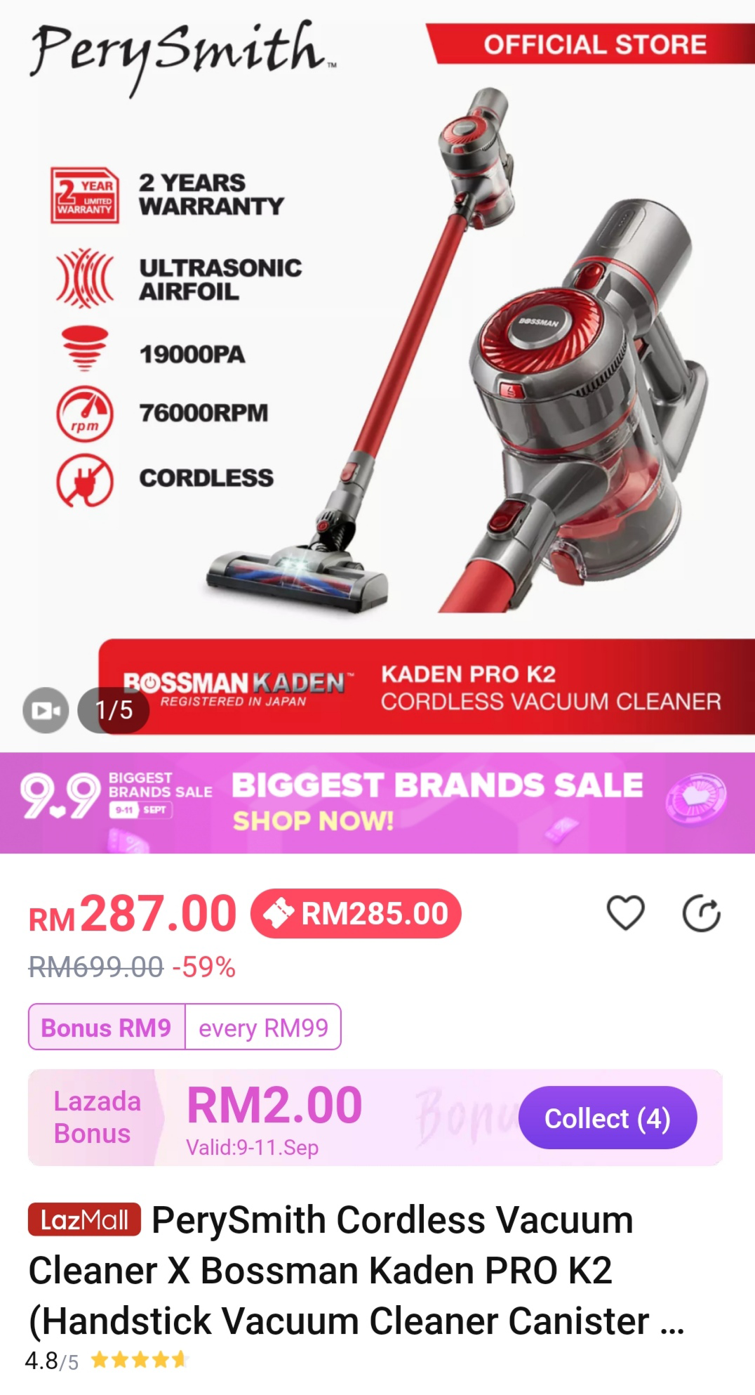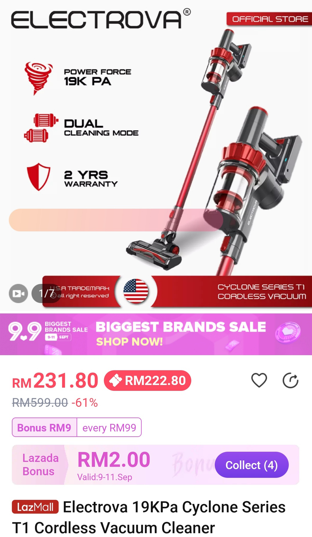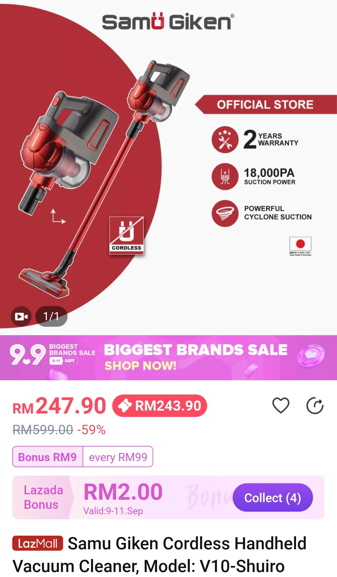 还有~从即日起至9月11日,通过Lazada App 每日领取Lazada Bonus 奖励!每消费RM99 就可额外折扣RM9!在你付款时,可合拼不同的商家一起结账,以及叠加其他Lazada 折扣券哦!