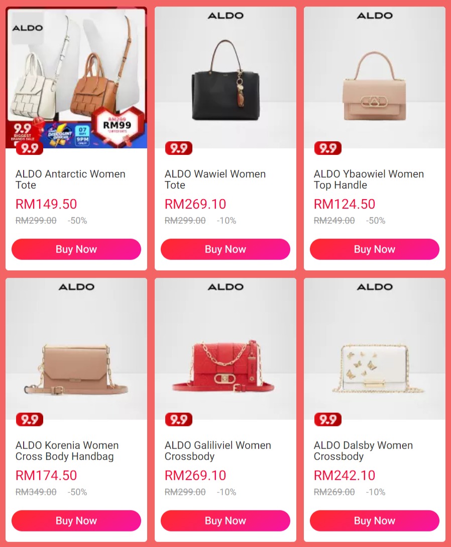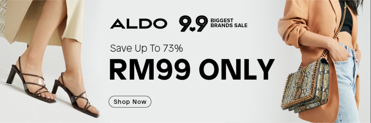 ALDO 是来自加拿大蒙特利尔的时尚品牌!在9月9日当天包包享有高达73%折扣,以及特别推出RM99 以内特价包包哦!