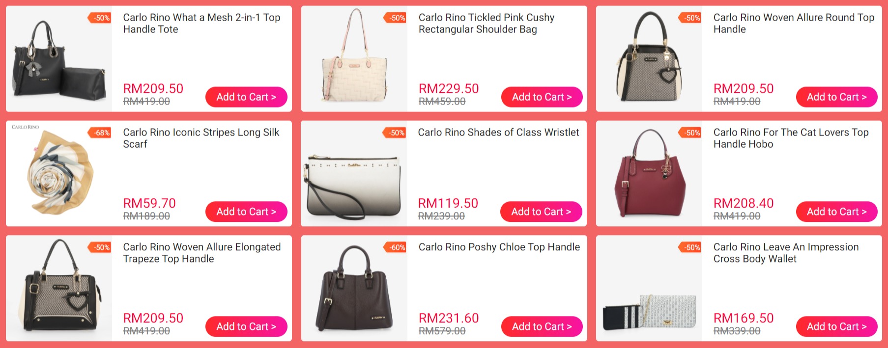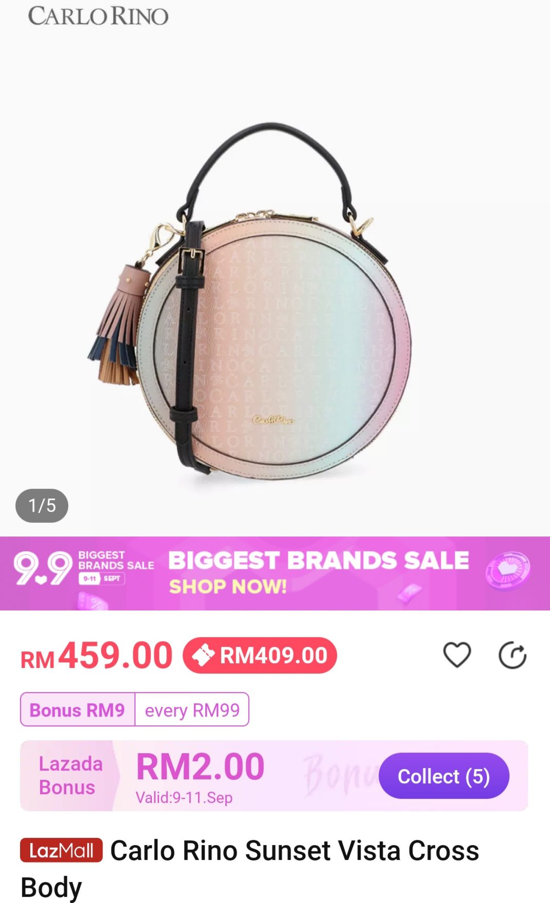 ▼ 例如:这款Carlo Rino Sunset Vista Cross Body(原价RM459)领取店家折扣券,只需RM409!省下RM50!