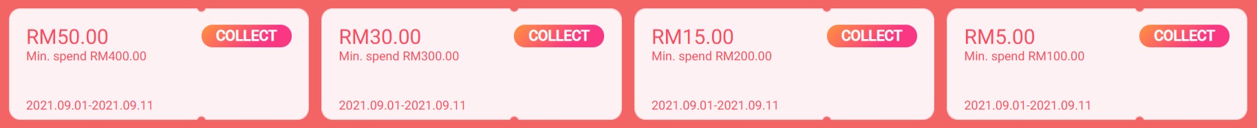 - 消费RM400,可折扣RM50(即日起至9月11日)