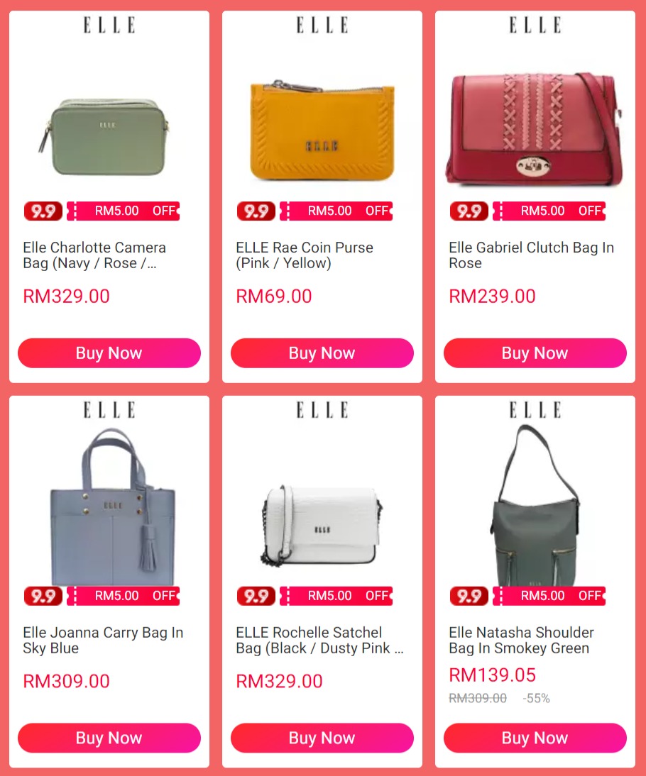 ELLE 包包折扣高达70%!另外领取店家折扣券,可获高达RM20 折扣!