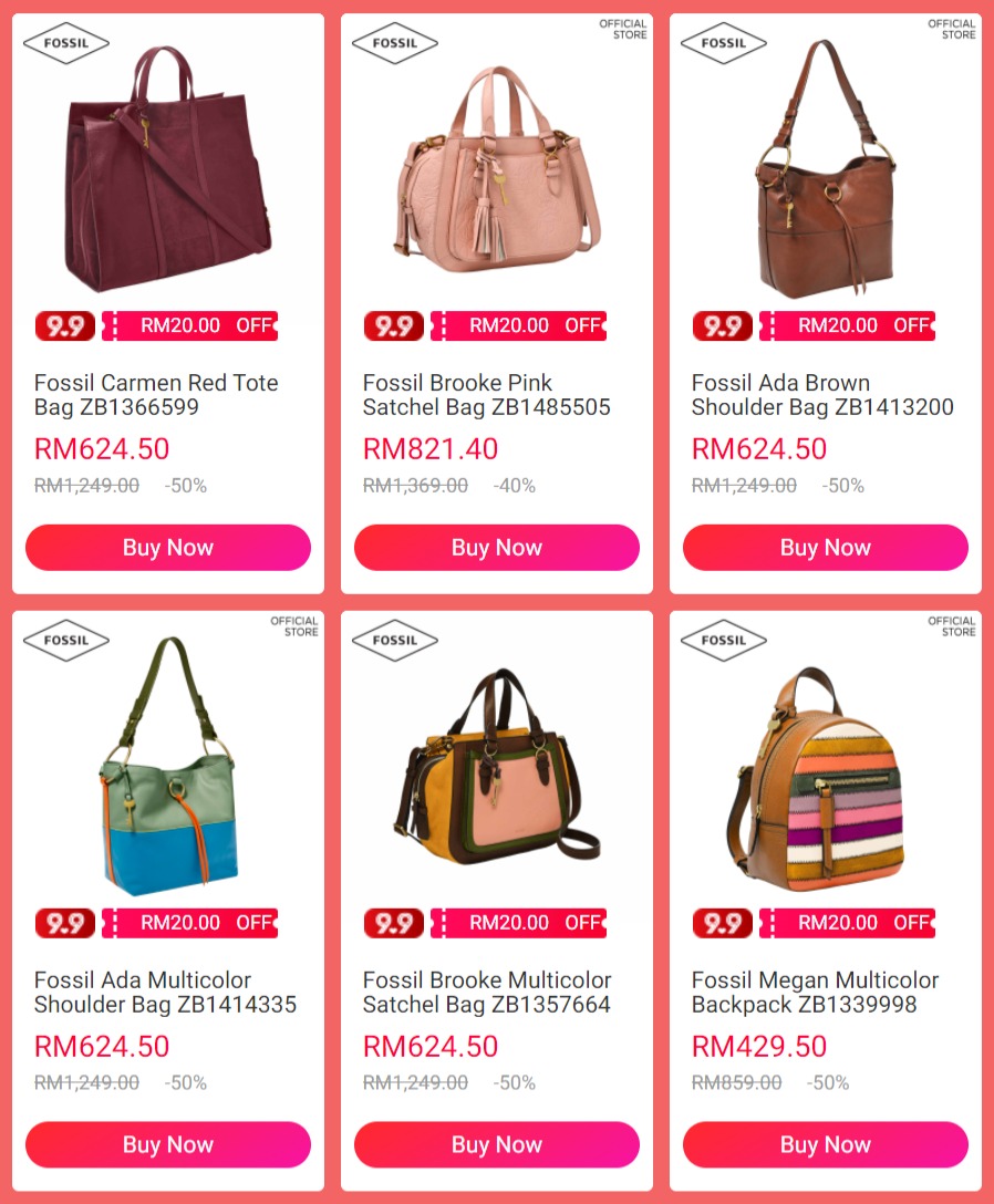 9月9日凌晨12am 至2am FOSSIL 品牌包包高达60%折扣,但只限指定款式!另外消费指定数额可折扣RM100!