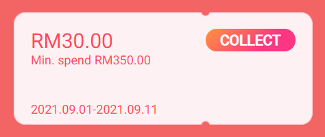 - 消费RM350,可折扣RM30(即日起至9月11日)