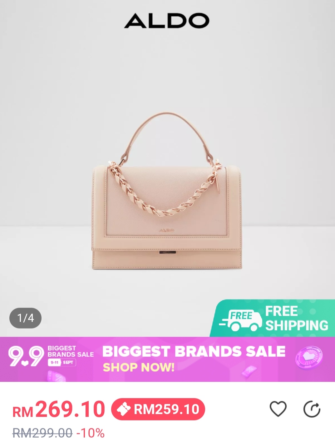 ▼ 例如:这款ALDO Yaewia Women Top Handle(原价RM299)折扣10%+店家折扣券,只需RM259.10!省下RM39.90!
