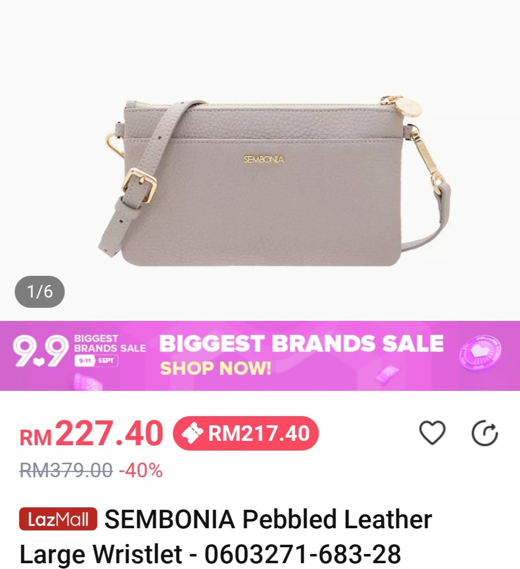 ▼ 例如:这款SEMBONIA Pebbled Leather Large Wristlet(原价RM379)折扣40%+店家折扣券,只需RM217.40!省下RM161.60!