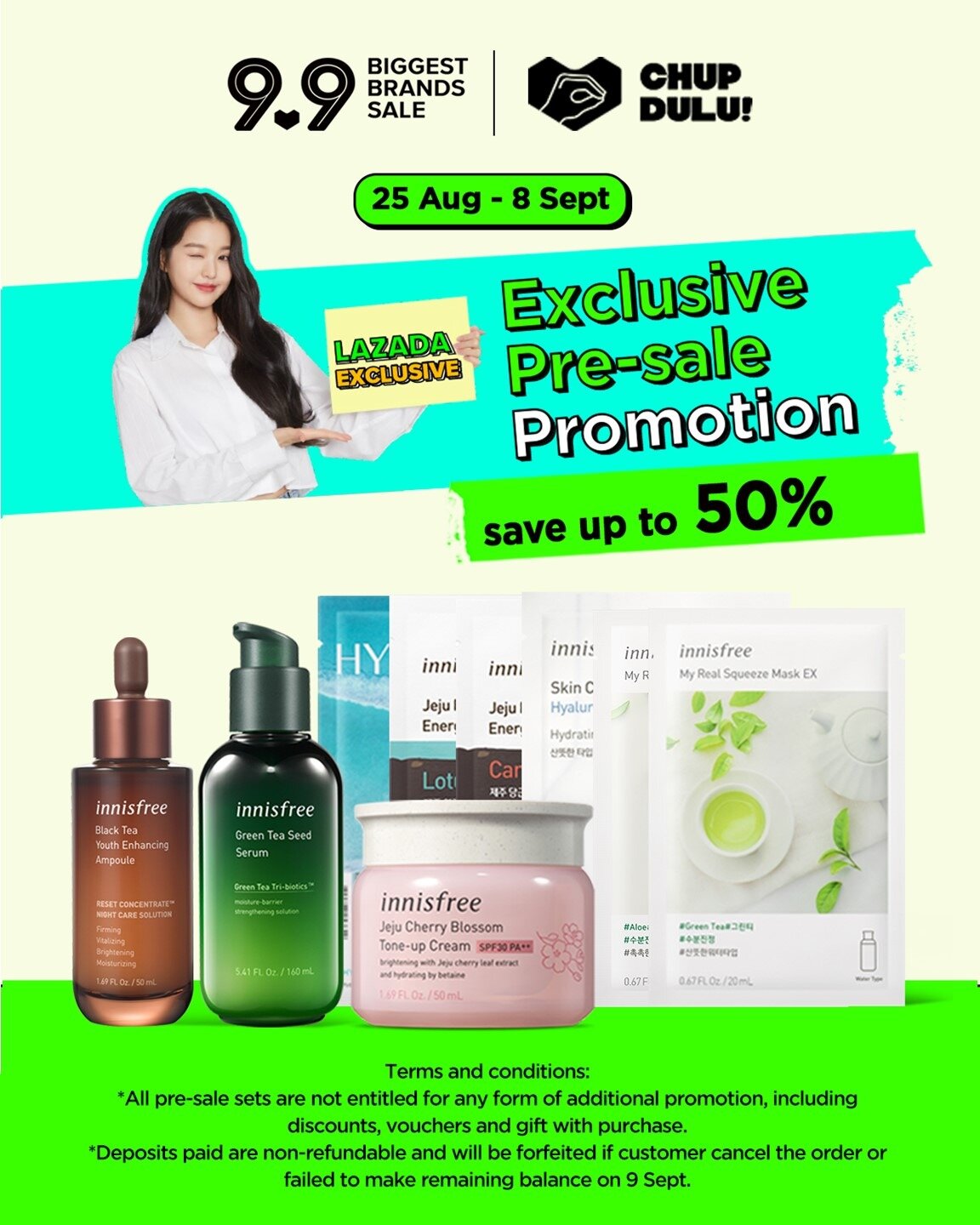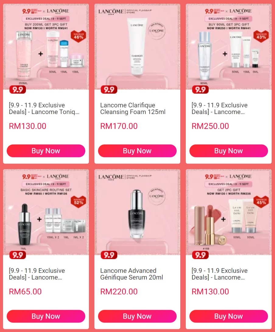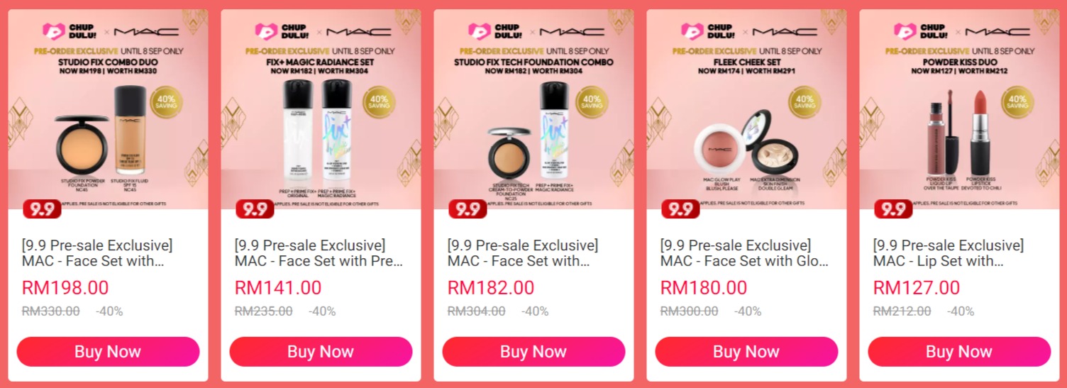 大马网购平台Lazada 与众多护肤品旗舰店纷纷推出【9.9 Chup Dulu!Lagi Murah】优先预购优惠!只要你在即日起至9月8日期间,预购美妆护肤品,可享有高达71%折扣及买一送一的优惠!