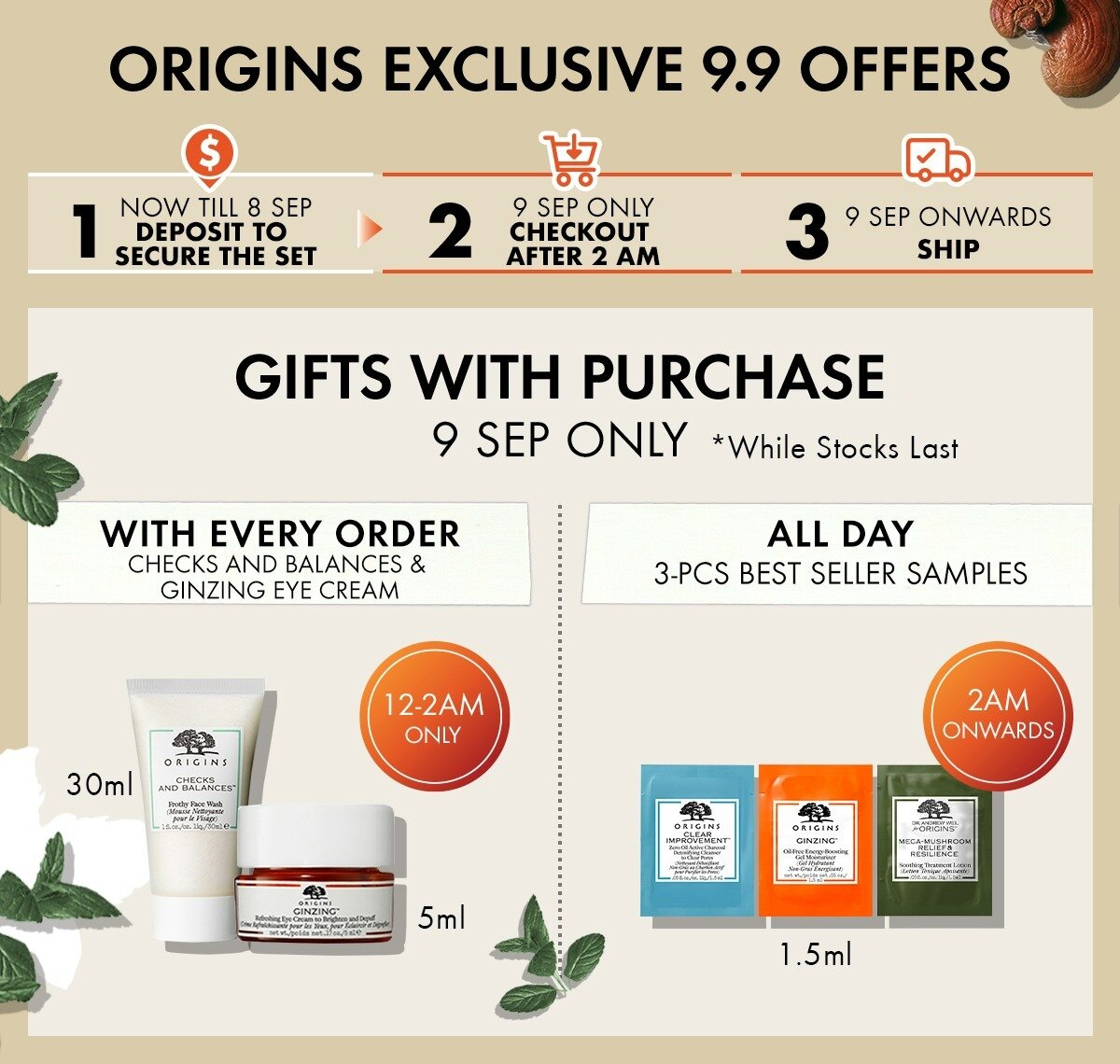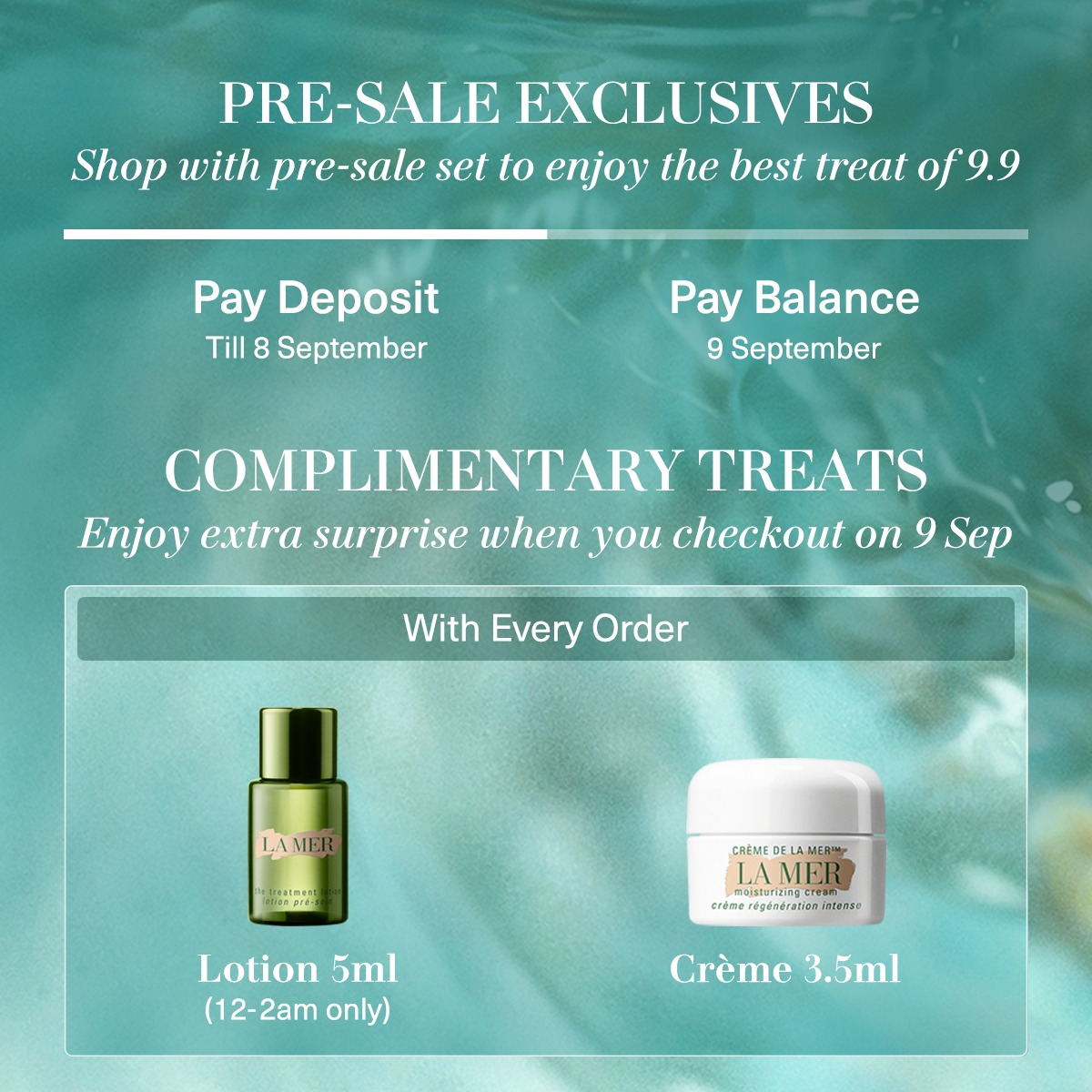 ▼ 9月9日当天每消费将获得赠品:获得5ml Lotion(12am – 2am)或3.5ml Creme