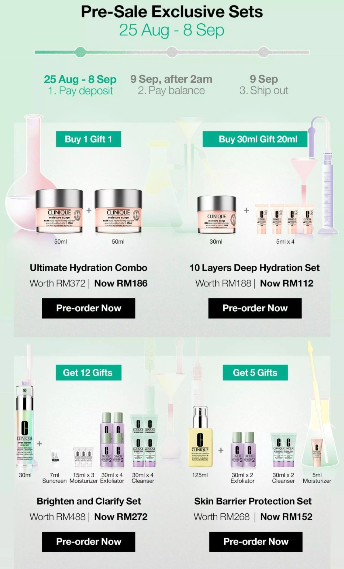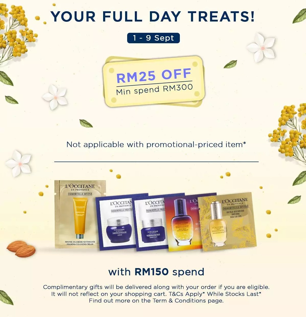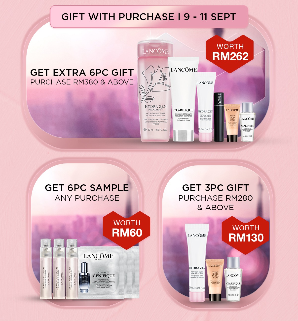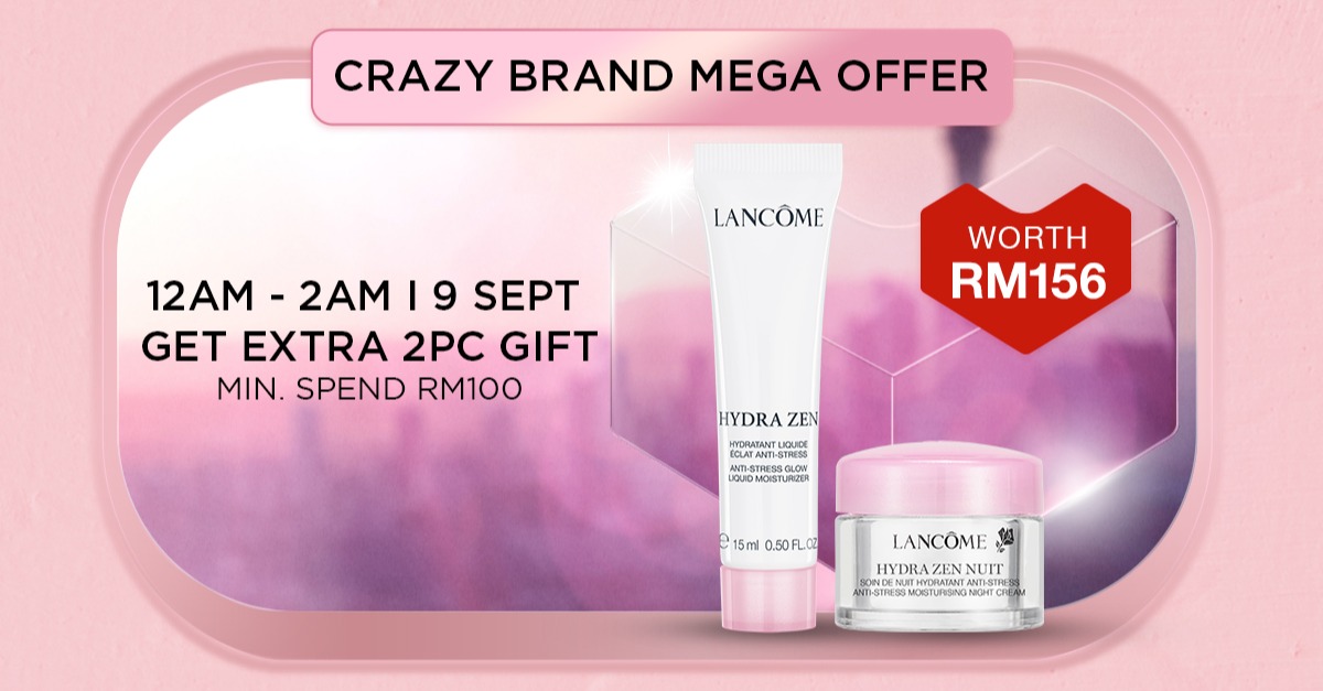 - 消费RM380或以上免费获得6个护肤样品(价值RM262)