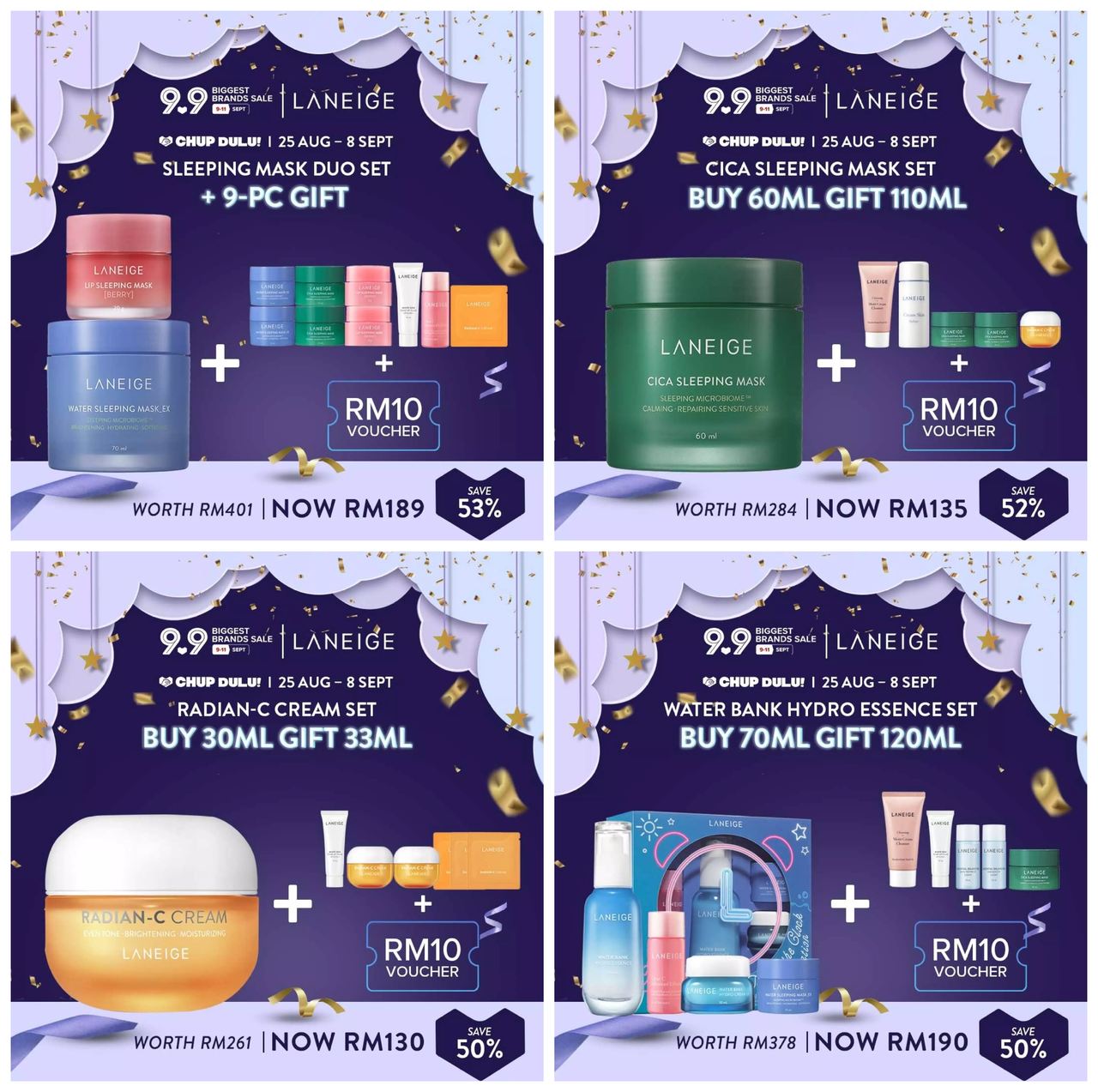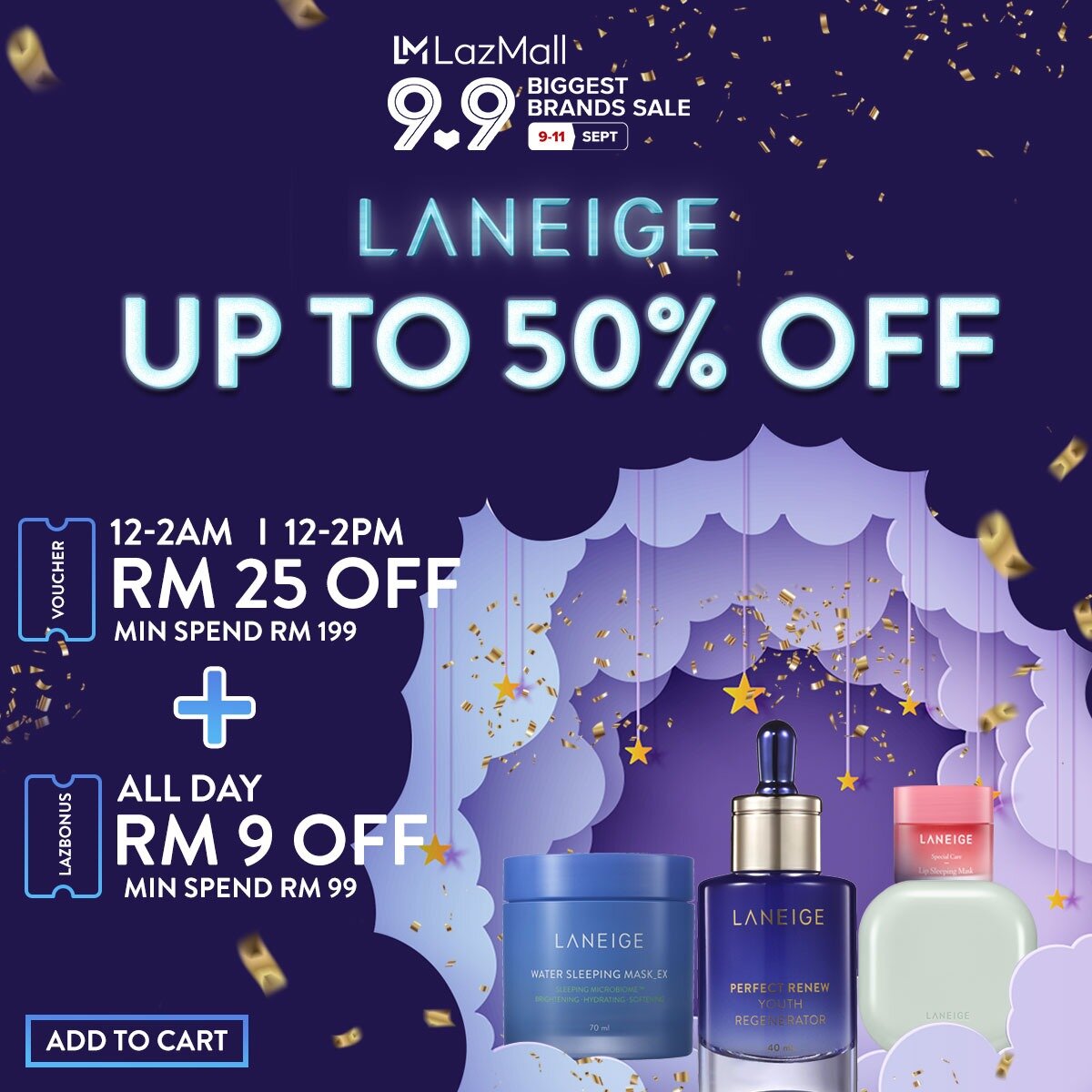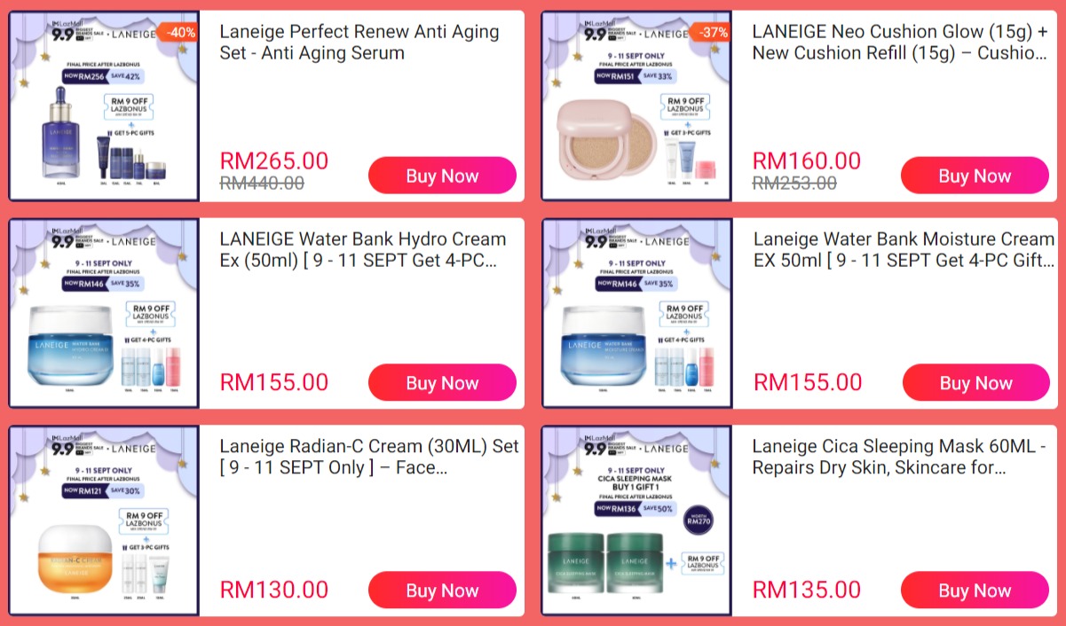 ▼ 在9月9日当天,Laneige 产品享有高达50%折扣!