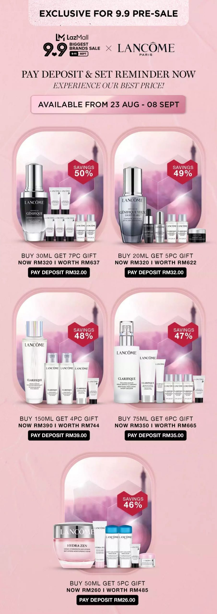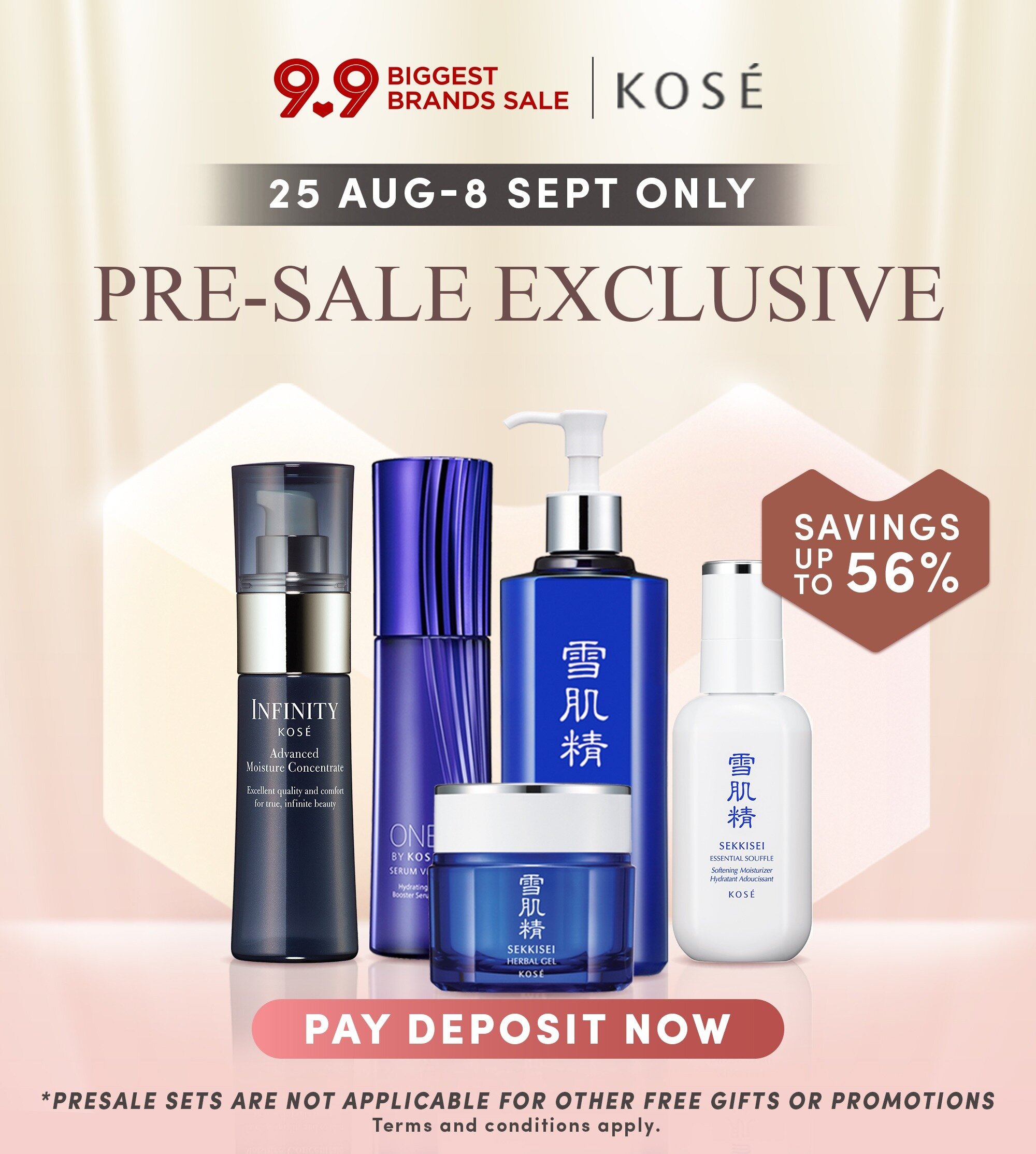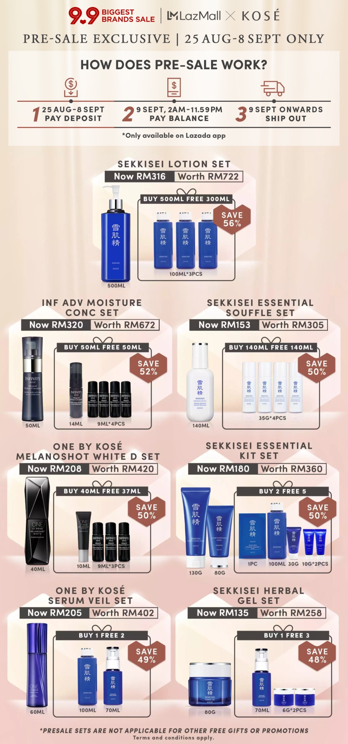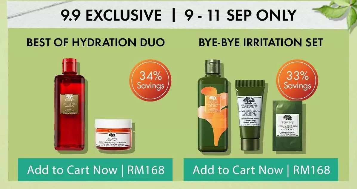 ▼ 在9月9日当天12am 至2am,最低消费RM100 免费获得2个护肤样品(价值RM156)!