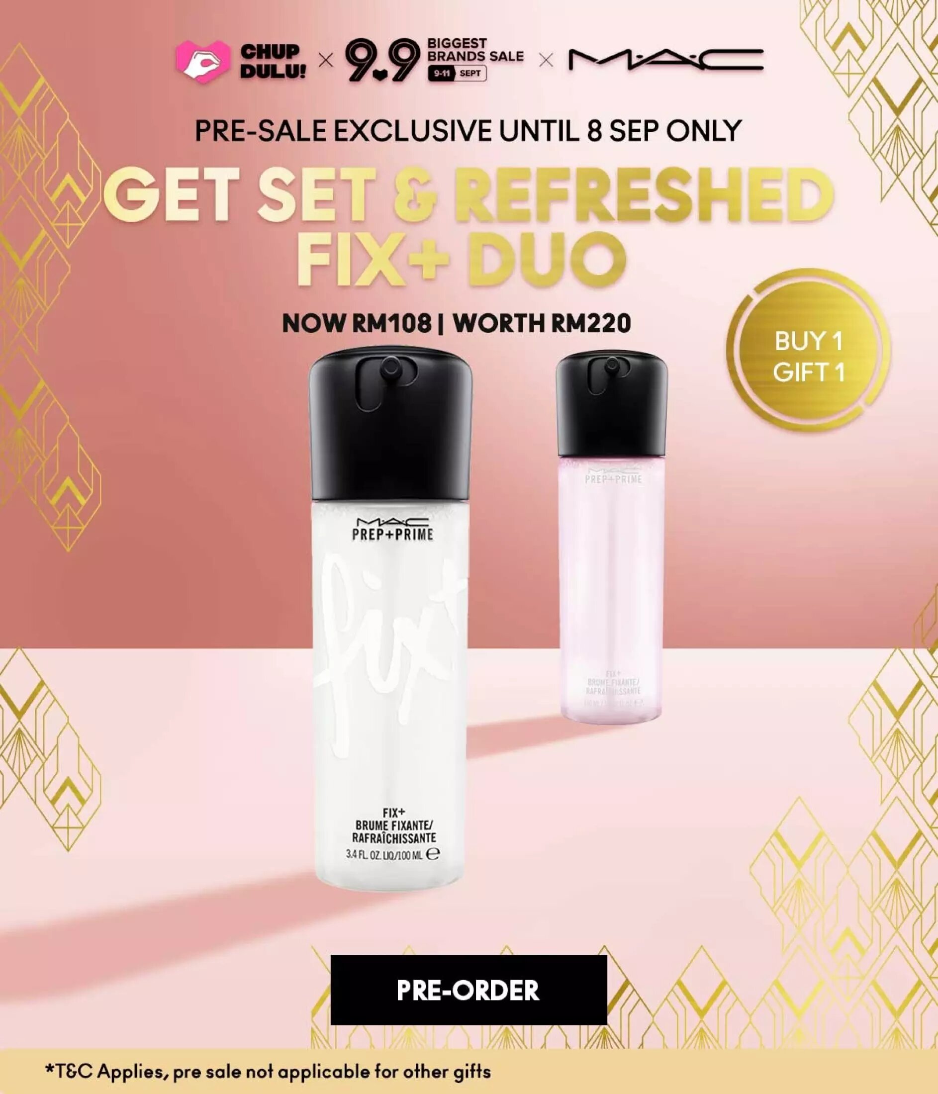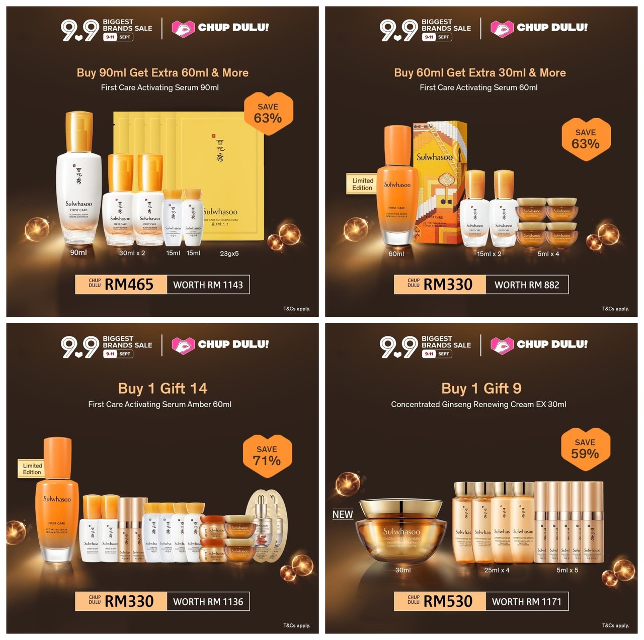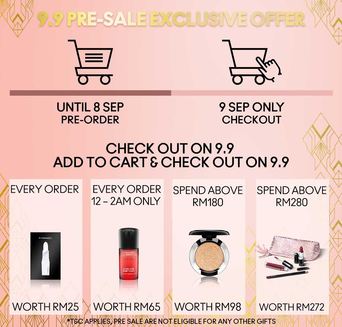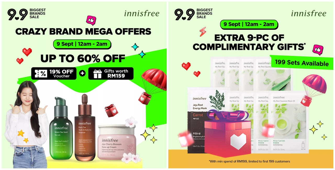 ▼ 在9月9日的凌晨12am 至 2am 产品高达60%折扣!以及额外送出9个赠品(必须消费RM199;仅限199 套而已)