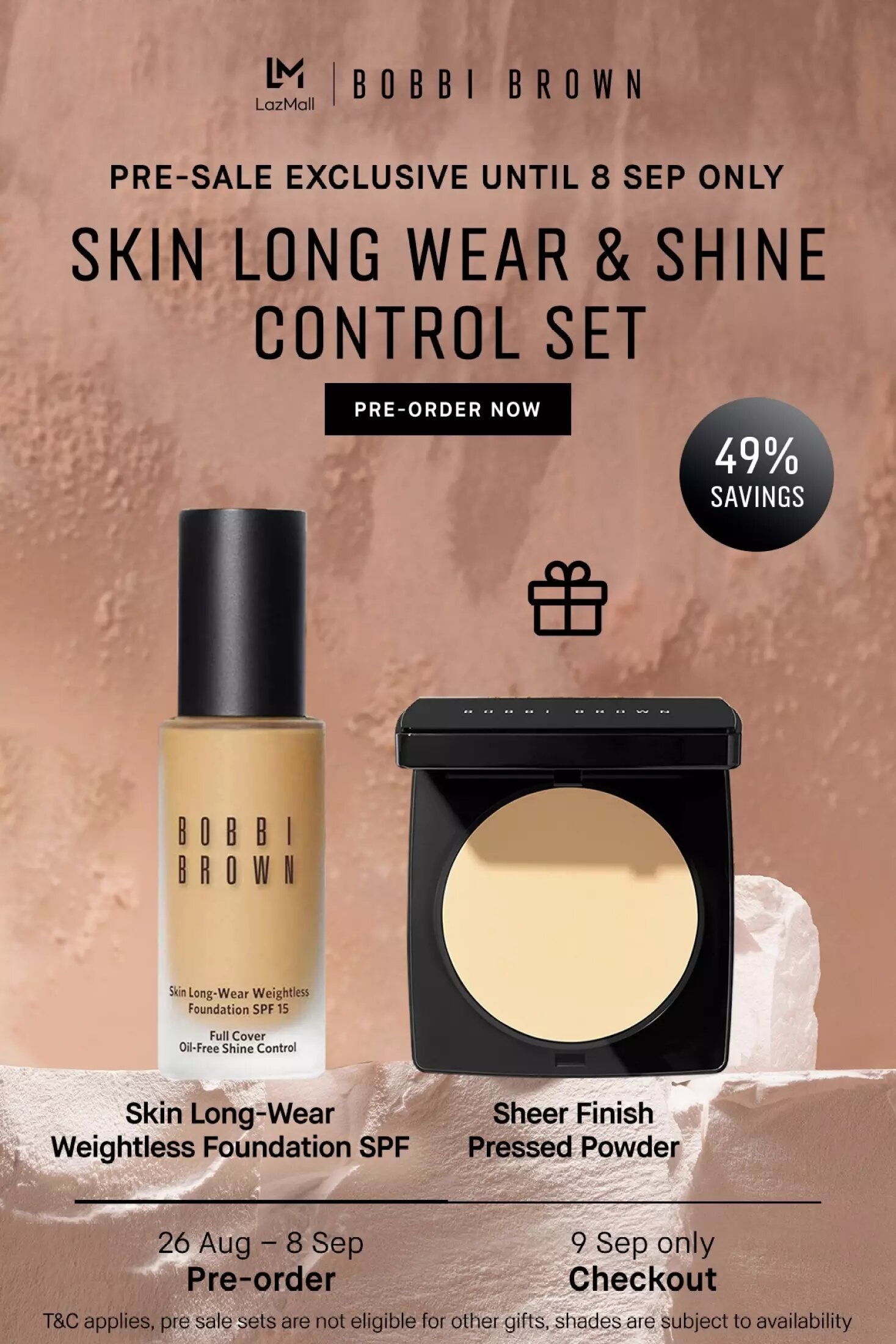 - 每消费将送出Vitamin Enriched Face Base 7ml(价值RM37;只限12am – 2am)