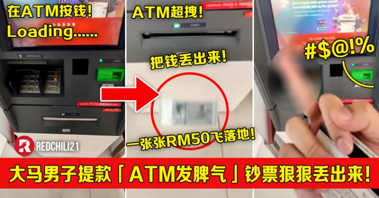 一名大马男子在 ATM 提款的时候,碰巧遇到它“心情不好”,给钱给得十分不乐意,非常使劲儿地把现金“吐”了出来!