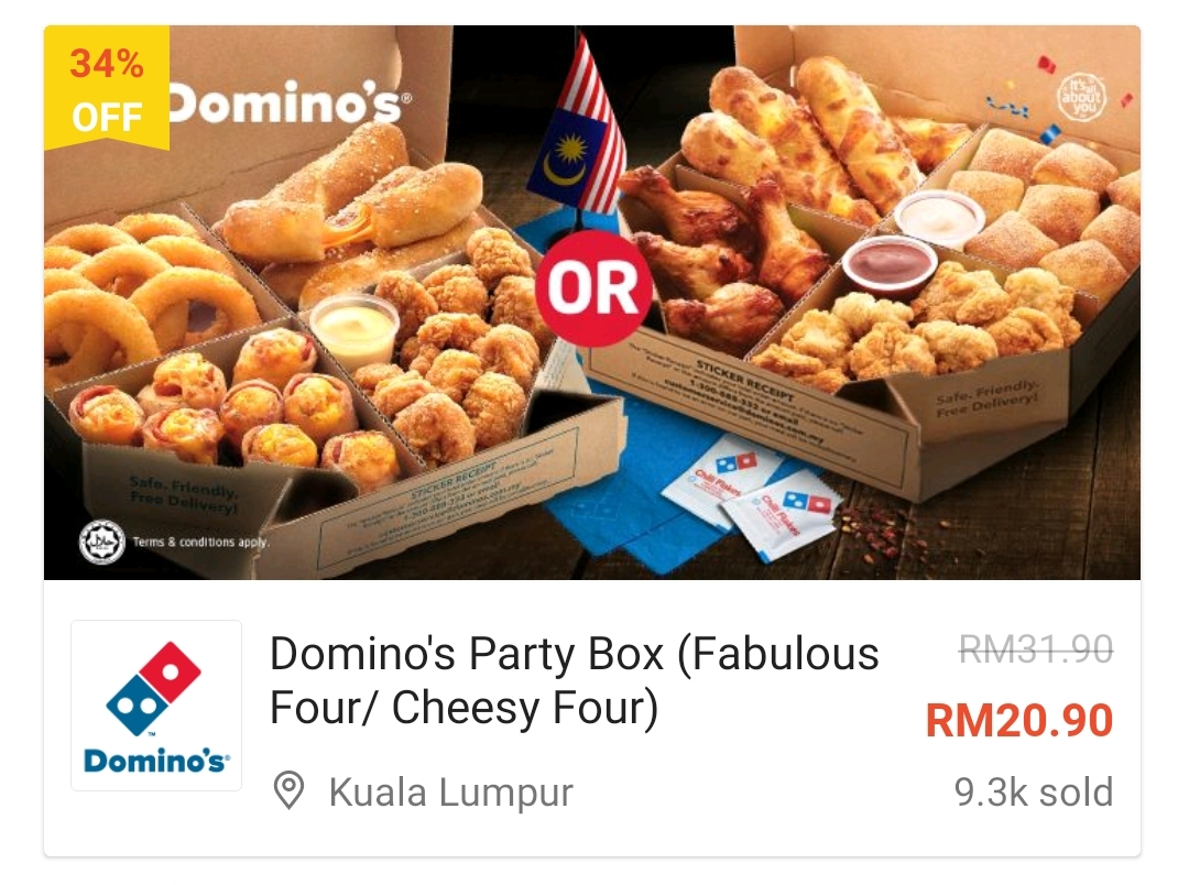 ▼ Domino’s Party Box(Fabulous Four/Cheesy Four)- RM20.90