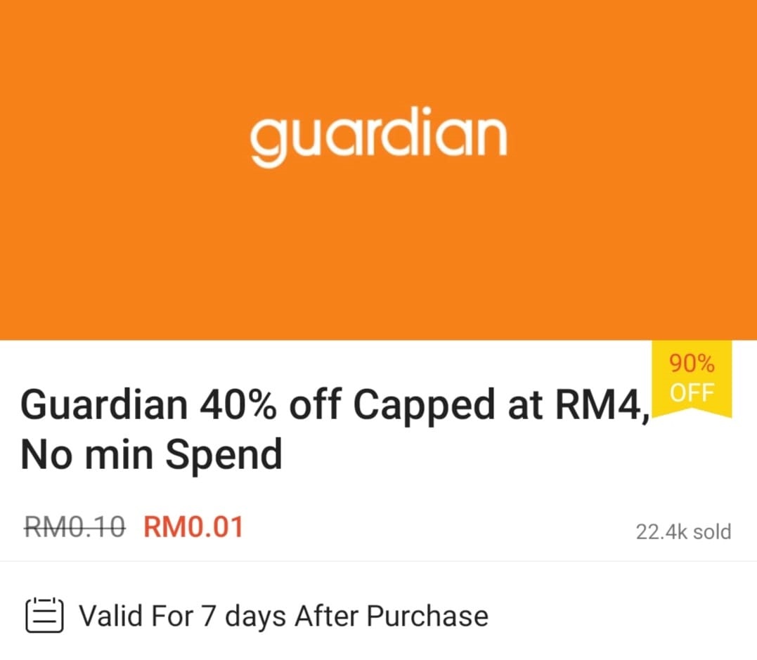 ▼ 别忘了,通过Shopee 购买Guardian 礼券,可享有40%现金回扣(高达RM4)!无限最低消费,必须使用ShopeePay 付款!