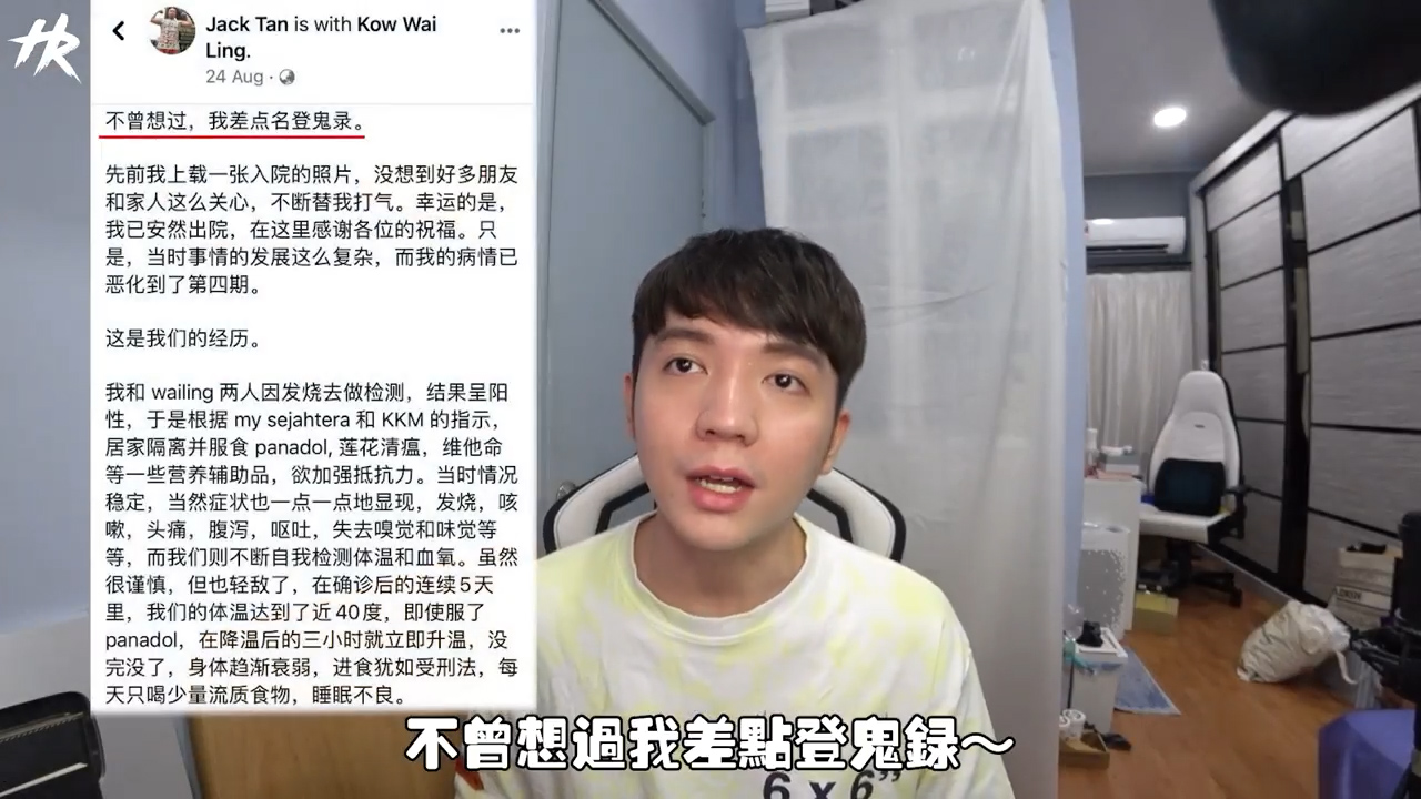 ▼ 该名友人 Jack 曾在脸书发文分享自己确诊的来龙去脉,朱浩仁除了在视频中阅读出来,随后还致电给当事人,请 Jack 在电话中详细说明。