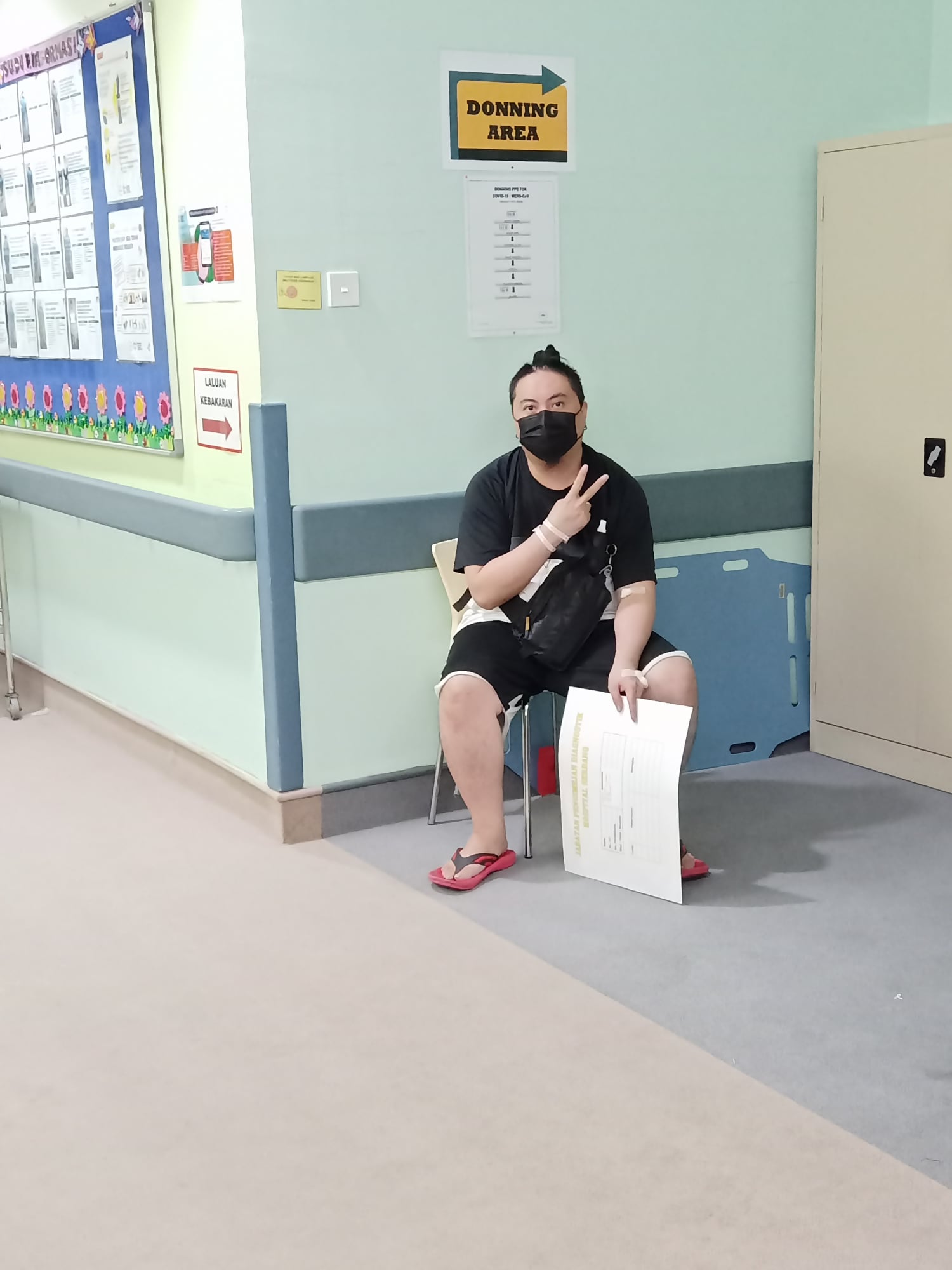 服食了 Dr Yap 给的药两天后,我们基本上已经全退烧,味觉和嗅觉都恢复了一些,但还是不灵敏的,咳嗽也减半了。本以为就此慢慢痊愈,怎料于当天早晨,我突然发现呼吸气管不适,血氧开始下降到94%,于是接下来的几天,wailing 基本没睡,24小时不断观察我的状况,并开始购买氧气瓶等等当辅助,一直到我咳出了血痰,血氧降至92%左右,Dr Yap 立即写了一封信让我入 Hospital Serdang。