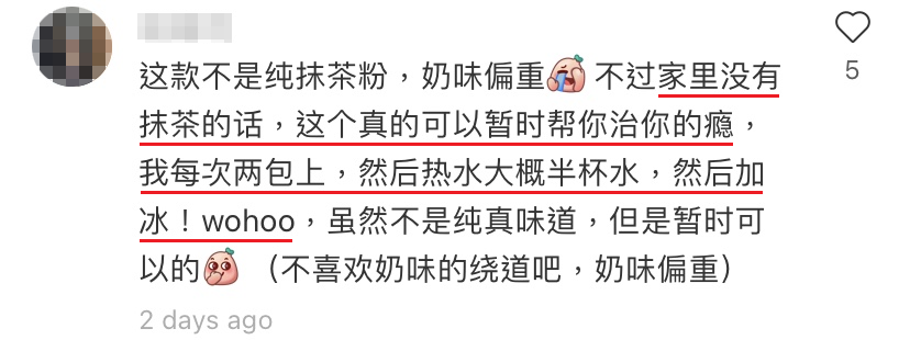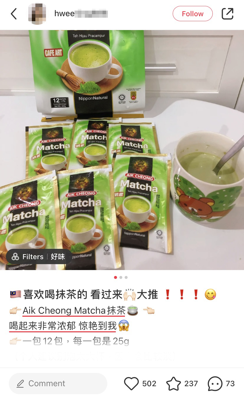 一名大马博主近日通过小红书分享自己种草的好物,香味浓郁又好喝的速溶抹茶,随后网友们也在评论区分享了其它更好喝的速溶饮品,统统不超过RM15哦!