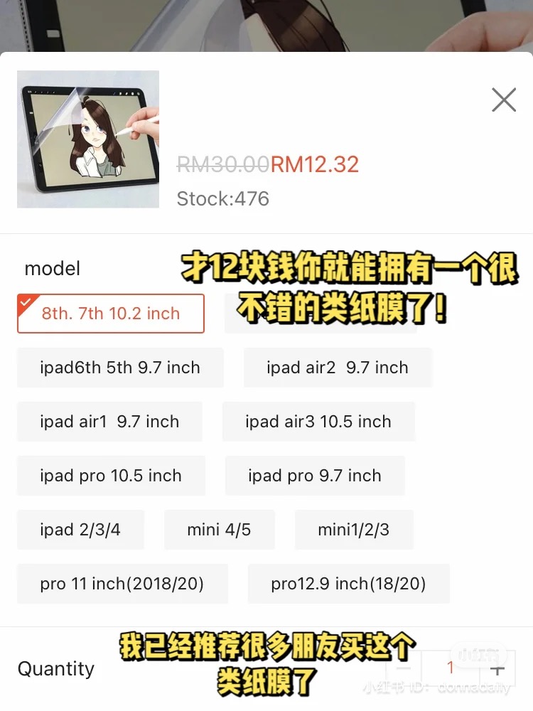 重点才RM12,我朋友买的RM30左右。所以如果想试试便宜的类纸膜,不妨买看看!