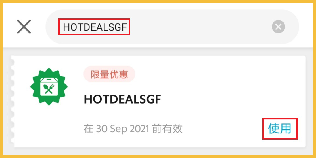 ▼ 步骤 5:输入优惠码「HOTDEALSGF」。然后,点击「使用」 。