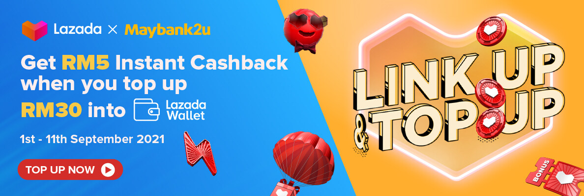 ▼ 使用Maybank2u 充值RM30 及绑定Lazada Wallet,可获得RM5 现金回扣