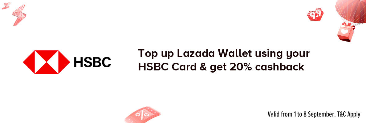 ▼ 使用HSBC Card 充值Lazada Wallet 可获得20% 现金回扣;(新用户)充值最低RM10 可获得RM10 现金回扣