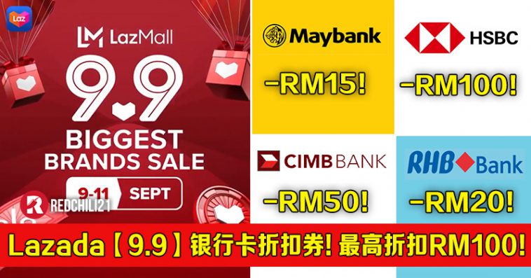 为了配合9月9日网购日的到来,大马Lazada 将在这个月份推出【9.9 Biggest Brands Sale】大促销,并送出高达RM100 银行折扣券给大家!
