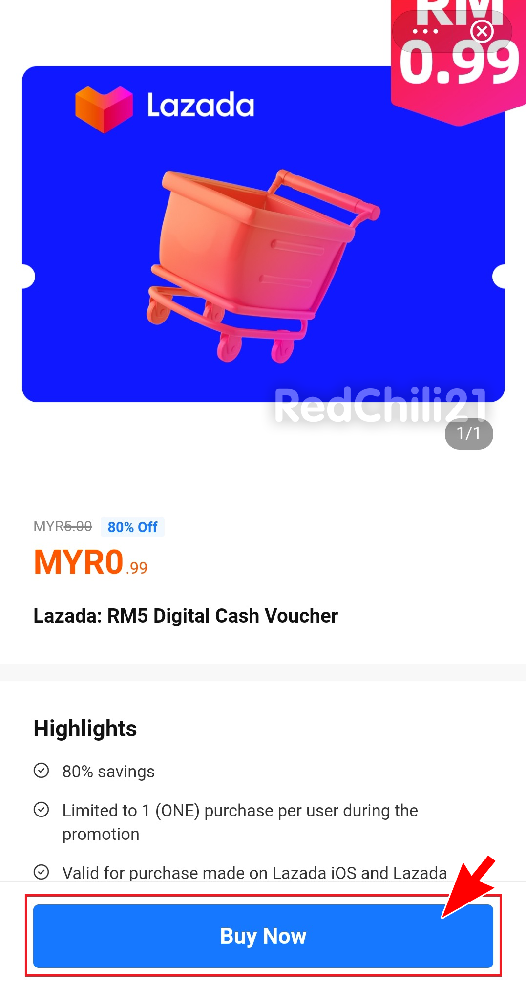 促销活动:购买Lazada RM5 折扣券只需RM0.99