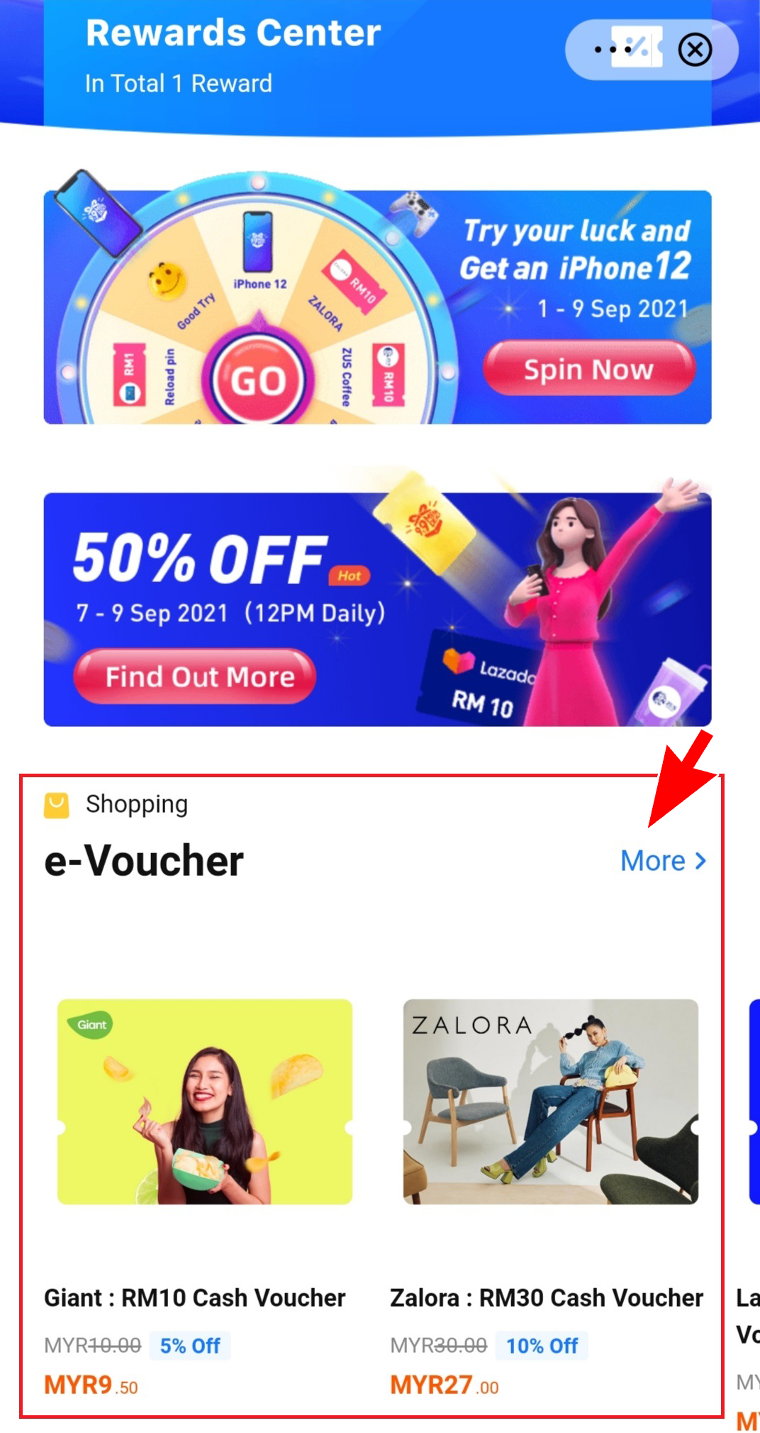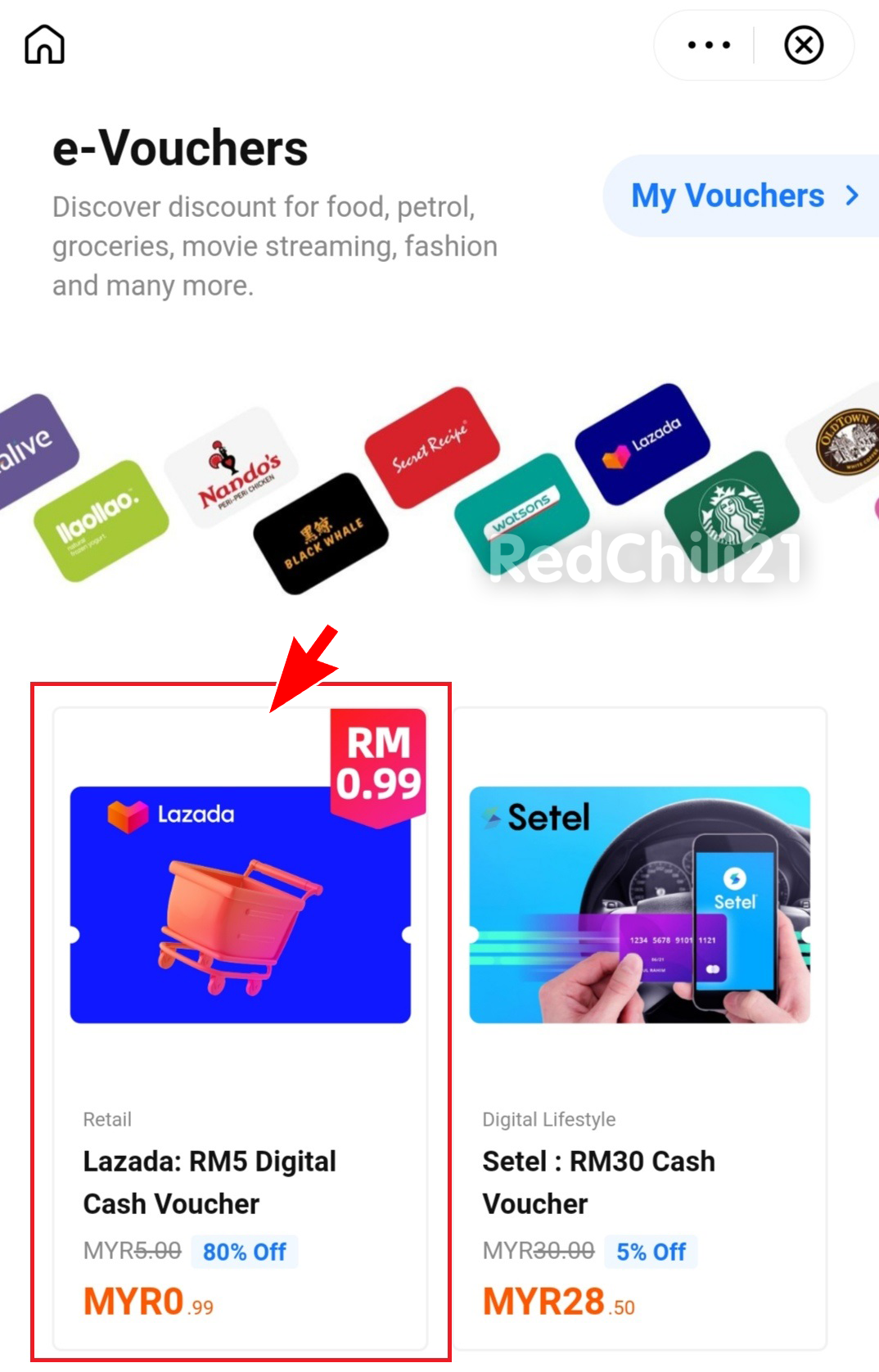 步骤3:点击“Lazada RM5 Digital Cash Voucher”。
