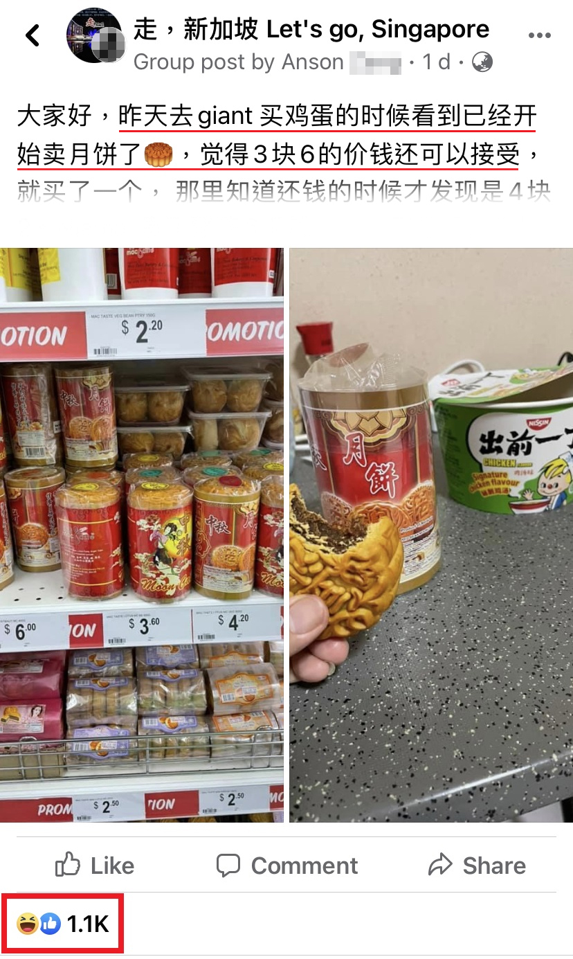 大家好,昨天去 Giant 买鸡蛋的时候,看到已经开始卖月饼了,觉得 S$3.60(约 RM11)的价钱还可以接受,就买了一个,哪里知道还钱的时候才发现是 S$4.20(约 RM13)。NiaXX 贵了整整 S$0.60…
