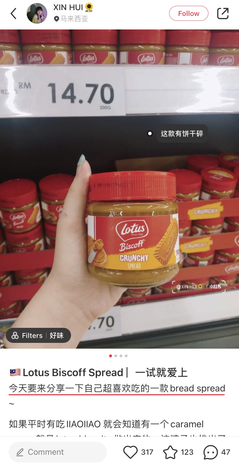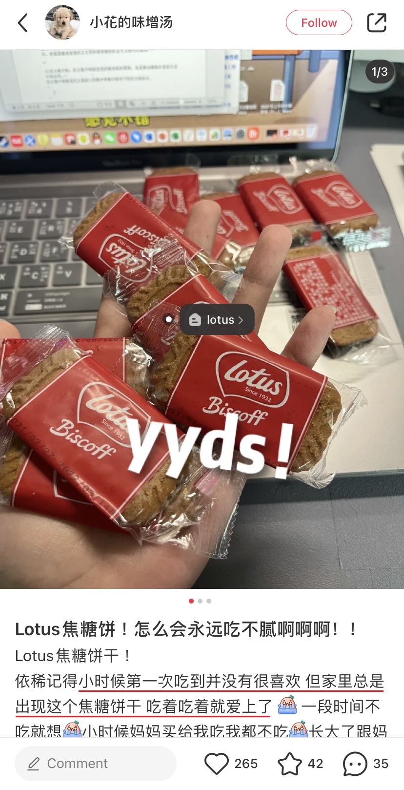 嘴馋了想吃点甜的小零食或是两片面包,Lotus Biscoff 绝对能满足你!早前,两位博主就在小红书分别安利了这个品牌的面包酱和饼干,评论区的网友们都说超级好吃!