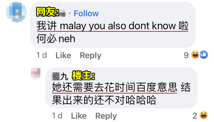 “猫九”被酸了以后不但没有反骂回去,回复还非常礼貌且有风度:「Saya cakap Bahasa Malaysia awak faham??(我说马来语,妳能看得懂?)」