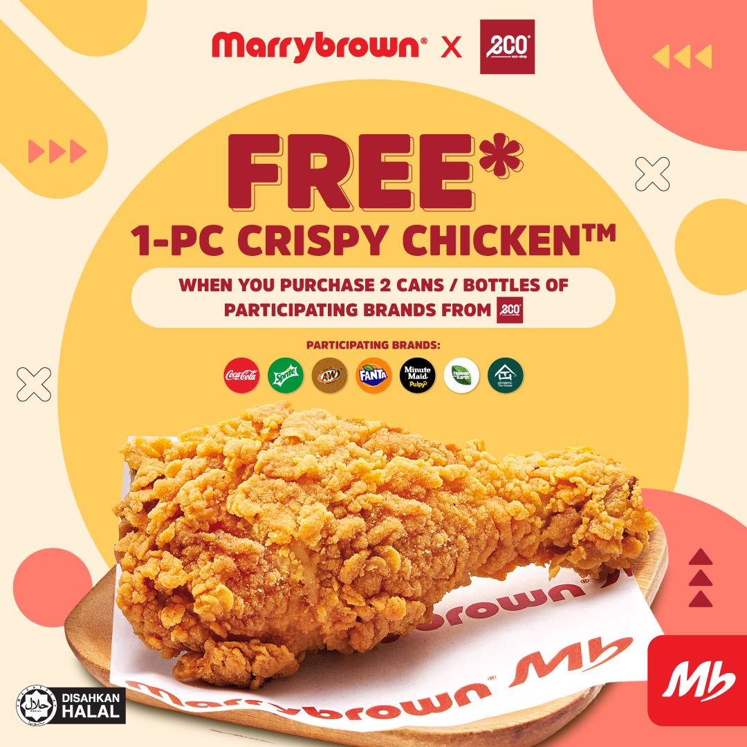 这项优惠是由Marrybrown与EcoShop 联合推出好康优惠,只要你完成2项任务就可免费获得1块香脆炸鸡啦!