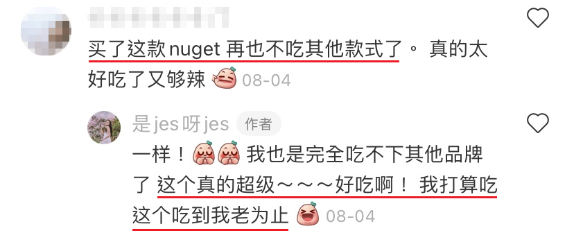 平时吃 nugget 一定要蘸起司酱的我,这次根本不舍得让其他酱抢走它原有的味道,它完全不需要蘸任何酱都非常非常好吃了!身边的人都成功被我种草了!