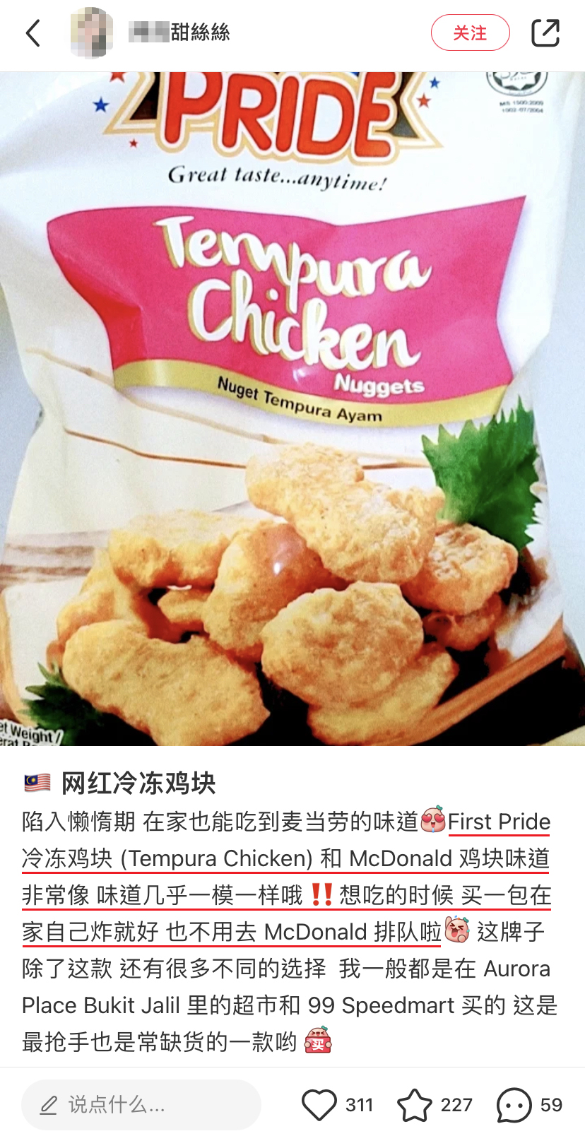 大马网友分别在小红书推荐了2个不同品牌的天妇罗鸡块(Tempura Chicken Nuggets),好吃得直接封神了!