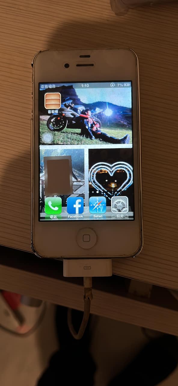 ▼ 照片中的 iPhone 4 还能充电、开机。