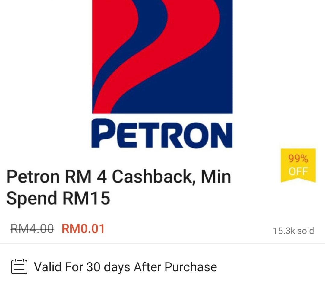 ▼ 你只需通过Shopee 购买Petron 添油礼券,可获得RM4 回扣;购买链接【点击这里