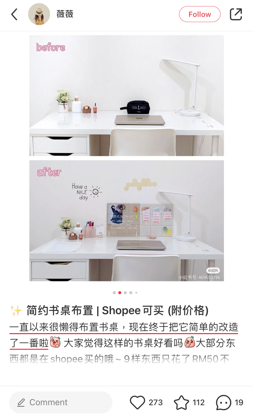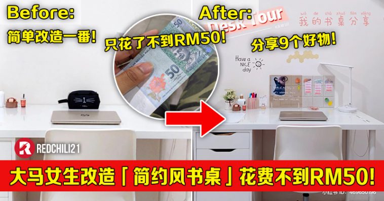 小红书有一名大马博主就分享了自己的书桌摆设,简约风的布置改造只花了仅仅不到RM50!快看看她究竟是买了哪些便宜又实用的好物吧!
