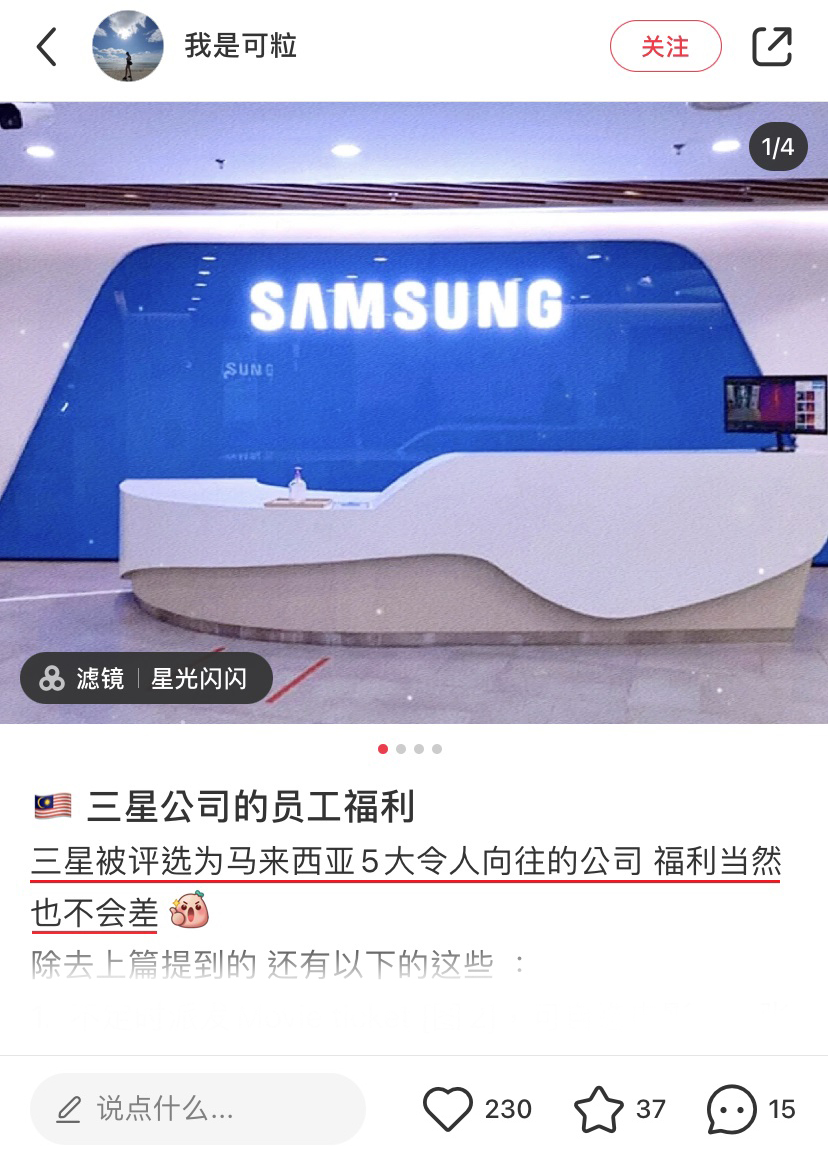 一名在大马 Samsung 公司工作已经有3年的职员日前在小红书分享,成为 Samsung 员工可享有一般公司没有的8大特别福利!