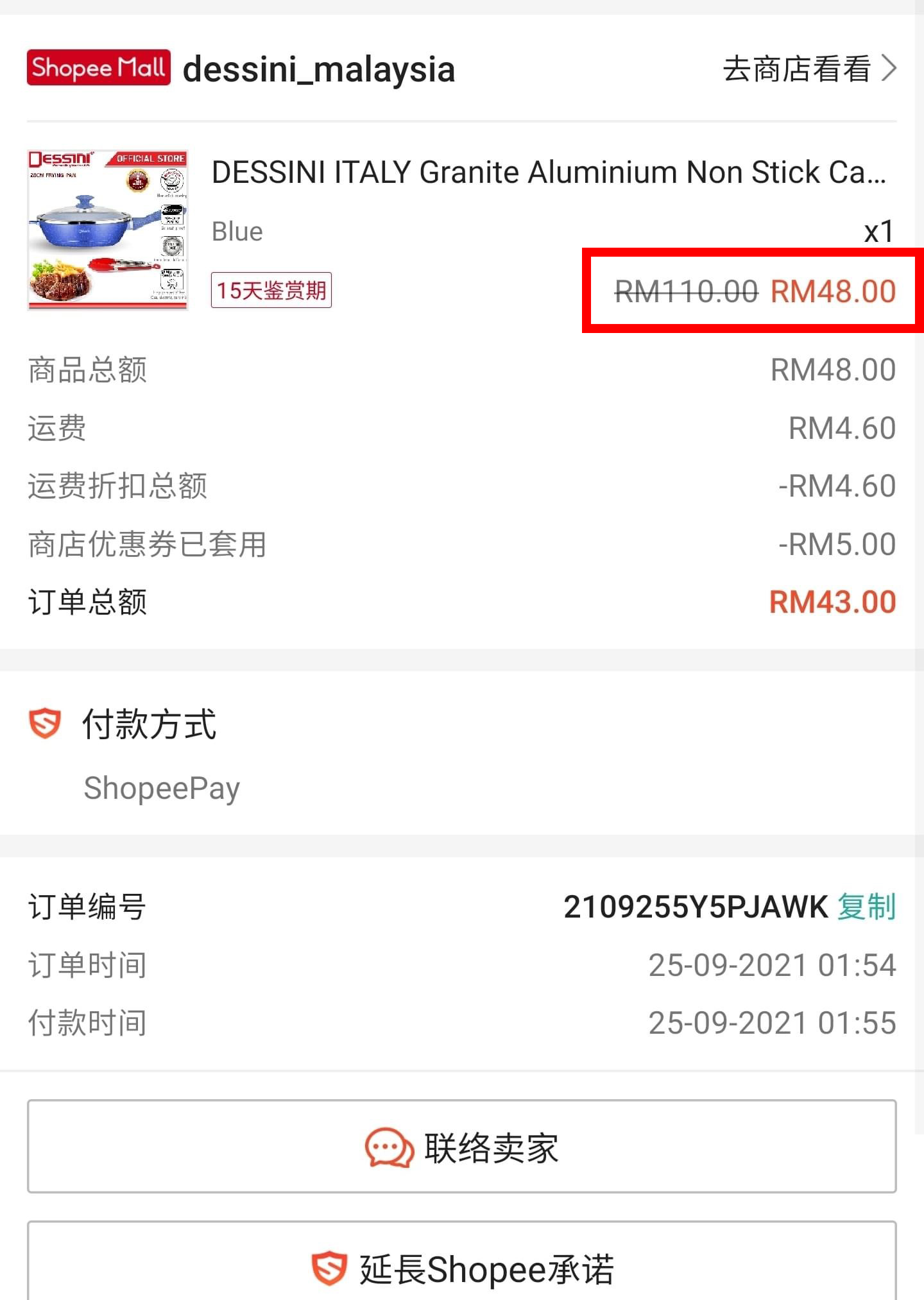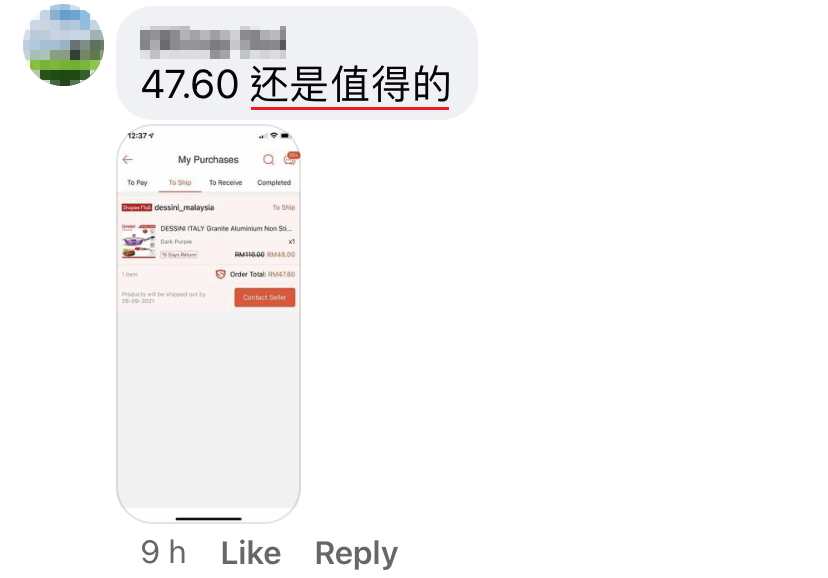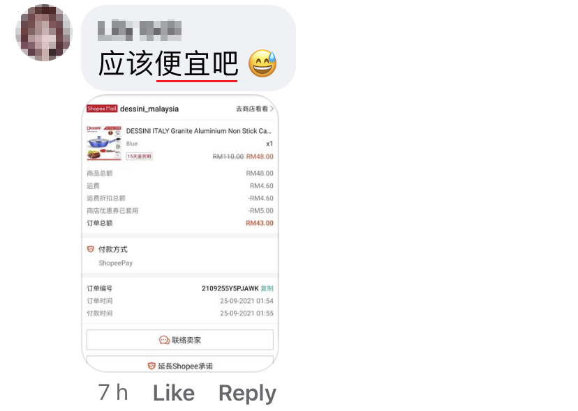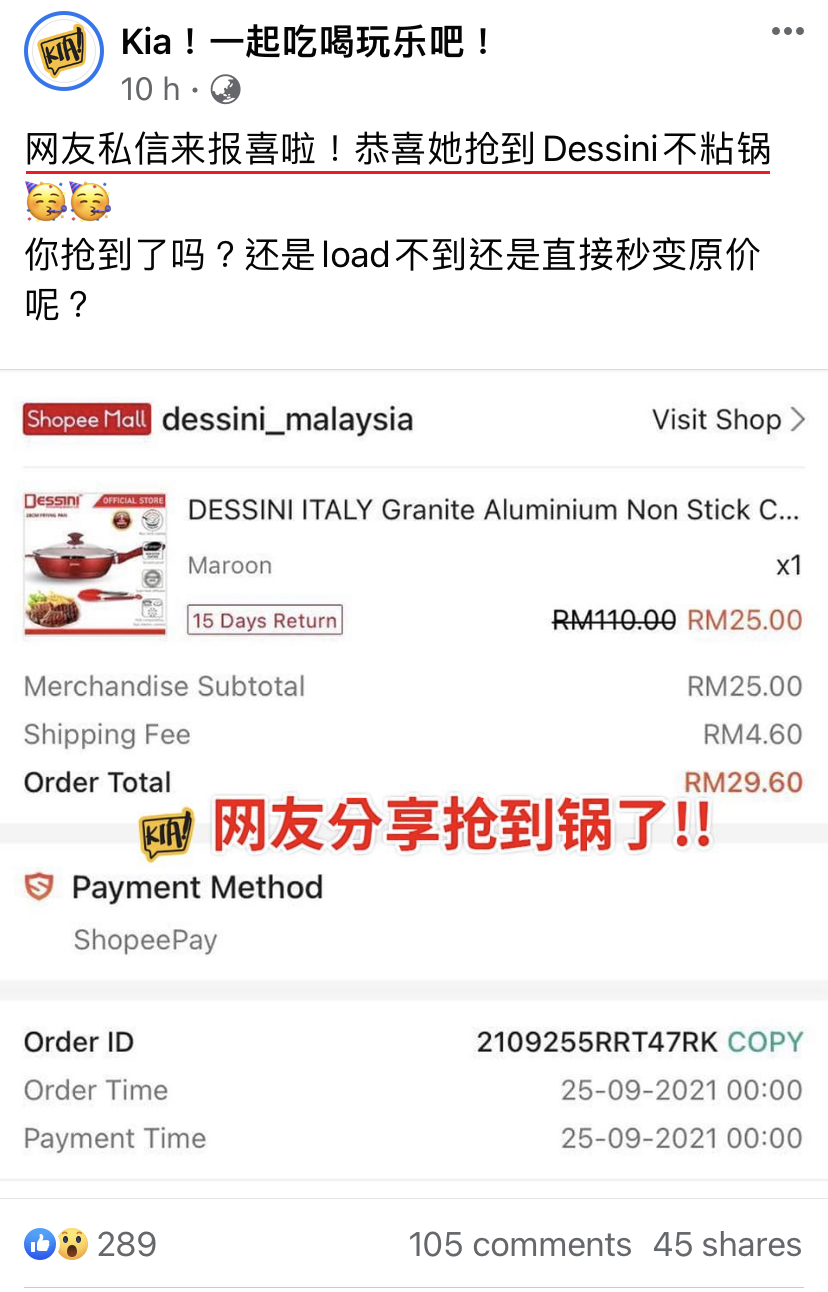 网友在9.25的凌晨,把原价RM110的不粘锅以促销价RM25成功下单!随后其他网友也纷纷在评论区分享喜悦,很多人都抢到了超便宜的促销价!