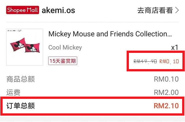▼ RM49.90的 Akemi 米奇系列,以仅仅RM0.10的促销价成功下单!