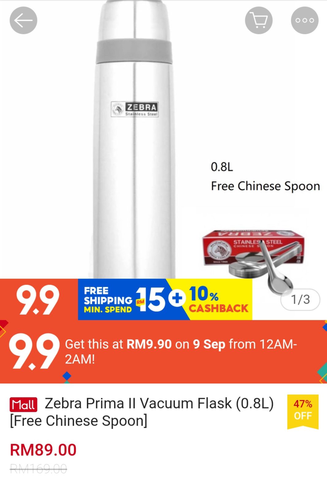 ▪ Zebra Prima II Vacuum Flask (0.8L) [Free Chinese Spoon] – RM169 RM9.90