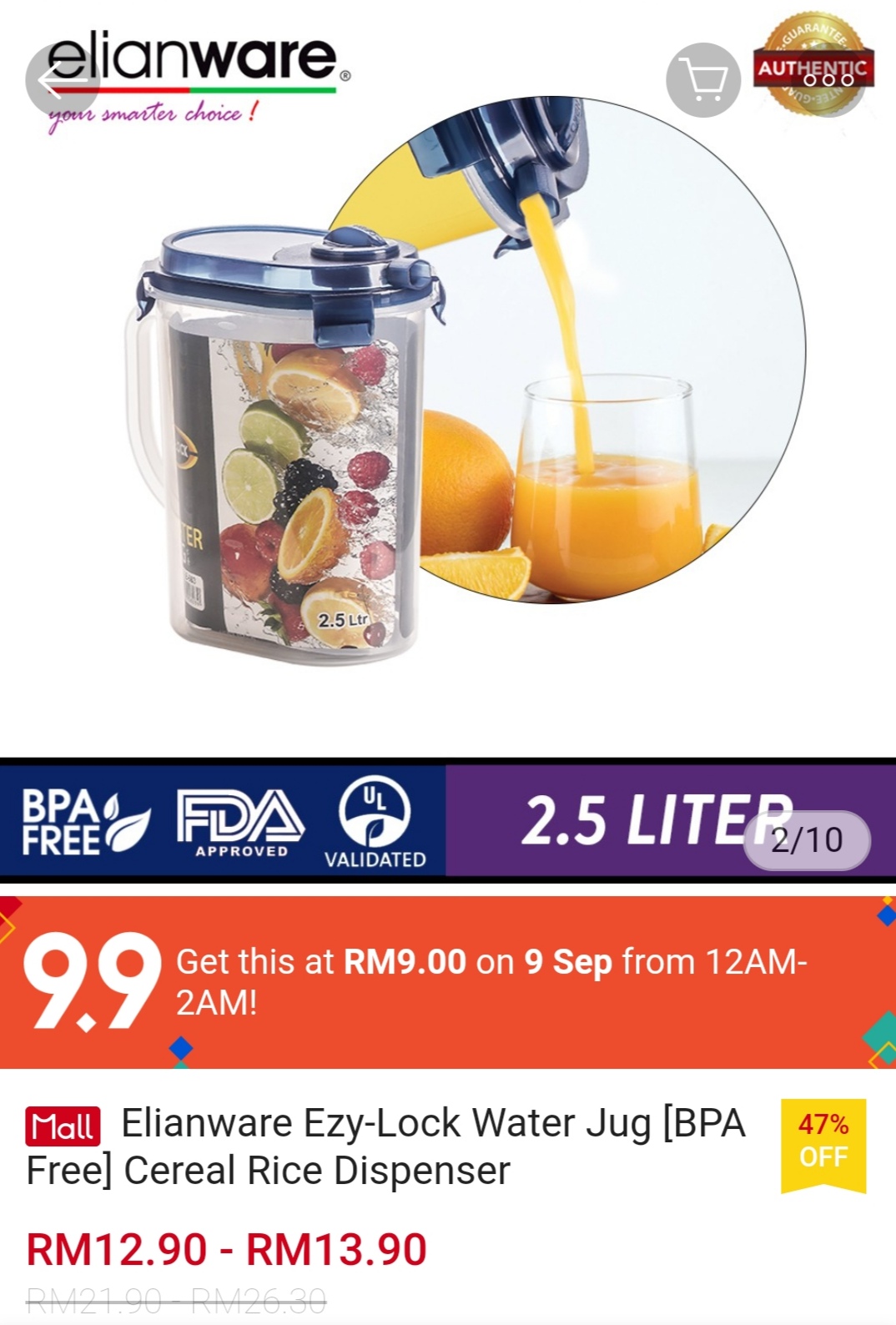 ▪ Elianware Ezy-Lock Water Jug – RM21.90 – RM26.30 RM9