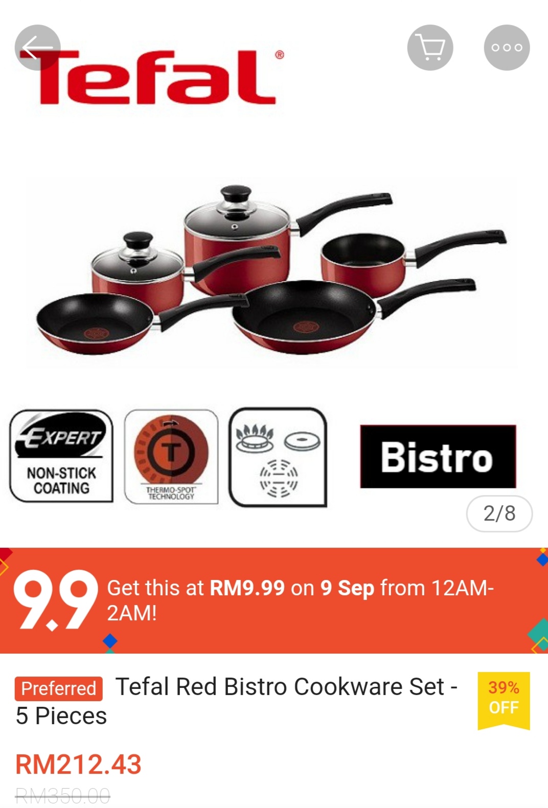 ▪ Tefal Red Bistro Cookware Set – 5 Pieces – RM350 RM9.99