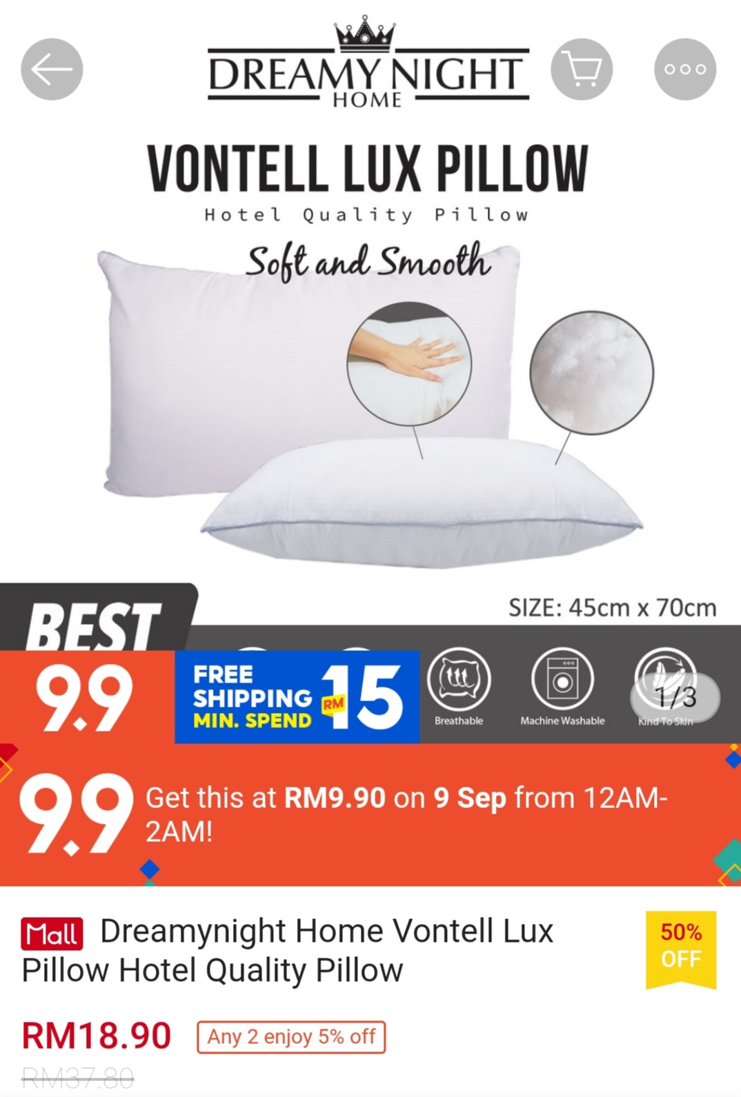 ▪ Dreamynight Home Vontell Lux Pillow Hotel Quality Pillow – RM37.80 RM9.90